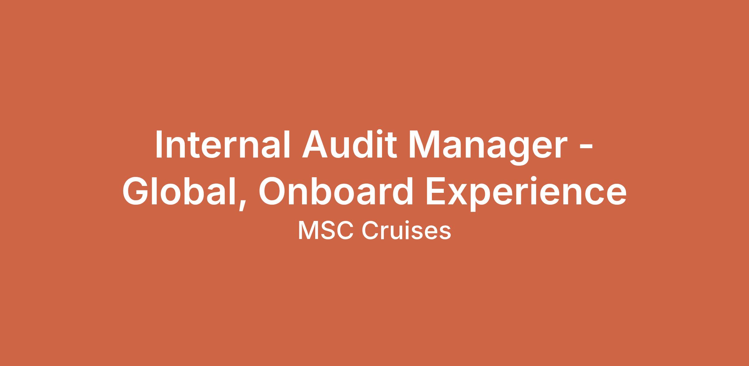 Internal Audit Manager - Global, Onboard Experience