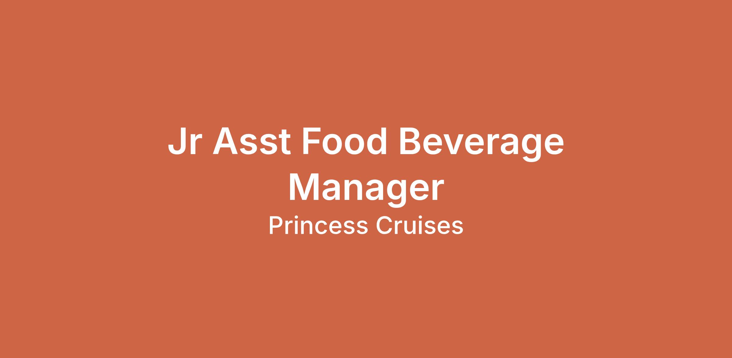 Jr Asst Food Beverage Manager