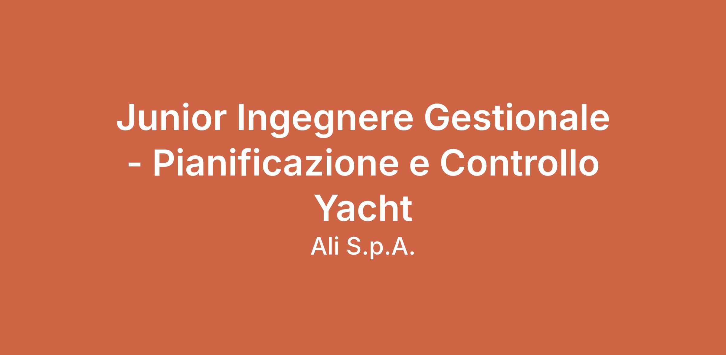 Junior Ingegnere Gestionale - Pianificazione e Controllo Yacht