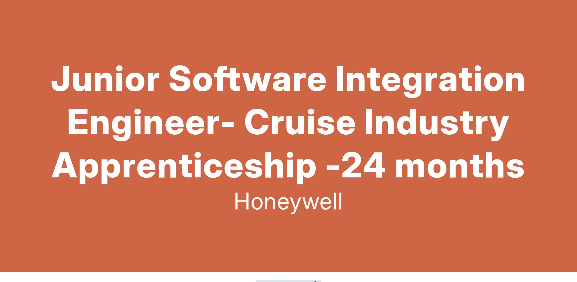 We are currently seeking a Junior Software Integration Engineer for our Honeywell Building Solutions division based in Cologno Monzese. You will be working fully onsite for the Cruise industry.