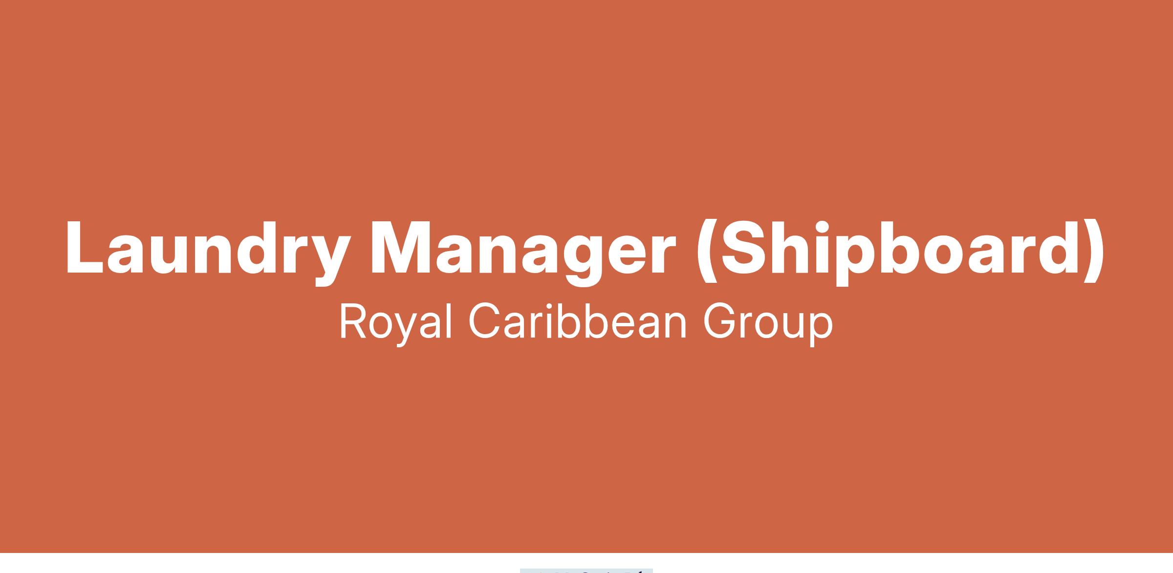 ESSENTIAL DUTIES AND RESPONSIBILITIES:Laundry Managers are a vital part of the management of any facility. He/She must possess some degree of technical proficiency; the ability to assess methods and procedures, knowledge of equipment and supplies, exercise good judgment on any corrective program and enough skill to determine the essentials and importance of complete divisional programs.The Laundry Master is accountable to the Executive Housekeeper for the day-to-day efficient operation of the laundry facilityAbility to apply common sense and carry out detailed written or oral instructions. Ability to deal with problems involving guests and their requirements.Washing, ironing, dry cleaning and storing of all laundry products.Ensures that all equipment is fully operational at all times and Liaise with Executive Housekeeper to repair equipment in a timely manner.Coordinates with all divisions to ensure proper sorting of the linen before it gets to the laundry. Linen must be free of garbage and sorted by color.Check finished product at the end of each cycle to ensure that the desired result is achieved. Enforce proper quality controls at each stage.Inspect dryers on a daily basis to ensure that they are free of lint and that they are operating within the correct temperature range.Coordinates daily inspection to ensure that all equipment are operating at optimum capacity and that water is at maximum temperature.Submit a copy of daily inspection report sheet to Executive Housekeeper and First Engineer.Coordinate cleaning of Non Logo uniform between Linen keeper and crewmember (there will be no charge if the item to be cleaned is verified by the Laundry Manager as a bone fide uniform item).All problem resolutions in the laundry must be directed to the Executive Housekeeper.Oversees sorting and washing procedures.Oversees timely distribution of all linen/laundered items for Front and Back of House areas this includes but is not limited too staterooms, crew cabins, Food & Beverage areas, Spa, Pool, Cruise Division etc.Co-ordinates washing schedules with the Cruise Division to ensure all costumes, etc required for theater/characters are laundered on time and to the required specifications.Oversees the setting of formulas and cycles for types of linen and types of soil and partners with Ecolab representative to ensure machines are regularly calibrated and service appropriately.Make sure all workers keep areas and equipment clean, sanitized and organized.Coordinate all maintenance and repairs of machinery. Advises the Executive Housekeeper immediately of any malfunctions and/or laundry concerns.Completes Crunchtime requisitions for all chemical supplies and understands the financial budget and work within these guidelines. Advises the Assistant Executive Housekeeper for any non chemical supplies required for the laundry.Liases with the Senior Deck Supervisor to ensure all Top Suite items are returned to guests on time and with the utmost quality.Completes quality control checks of Top Suite bed linens, towels and robes and liases with the Linen keeper and Senior Deck Supervisor to ensure the best quality items are available.Reviews weekly with the Executive Housekeeper the sales and revenue generated in the laundry through guest and crew laundry,monitors and looks for opportunities to meet/exceed targets.Reviews regularly with the Executive Housekeeper the financial budget to ensure the operation remains on plan for the month/year to meet targets.Fully owns any guest concern in line with onboard problem resolution guidelines to ensure maximum guest satisfaction.Other duties may be assigned.Understand and can apply in work practices environmental policies and procedures concerning such functions as collection, sorting and disposal of solid wastes and use of chemicals associated with cleaning, dry cleaning and laundry operations.Know and follow all SQM policies.All shipboard employees must by physically able to participate in emergency life saving procedures and drills. Full use/range of motion of arm and legs as well as full visual, verbal and hearing abilities are required to receive and give instructions in the event of an emergency requiring the lowering of a life boat.