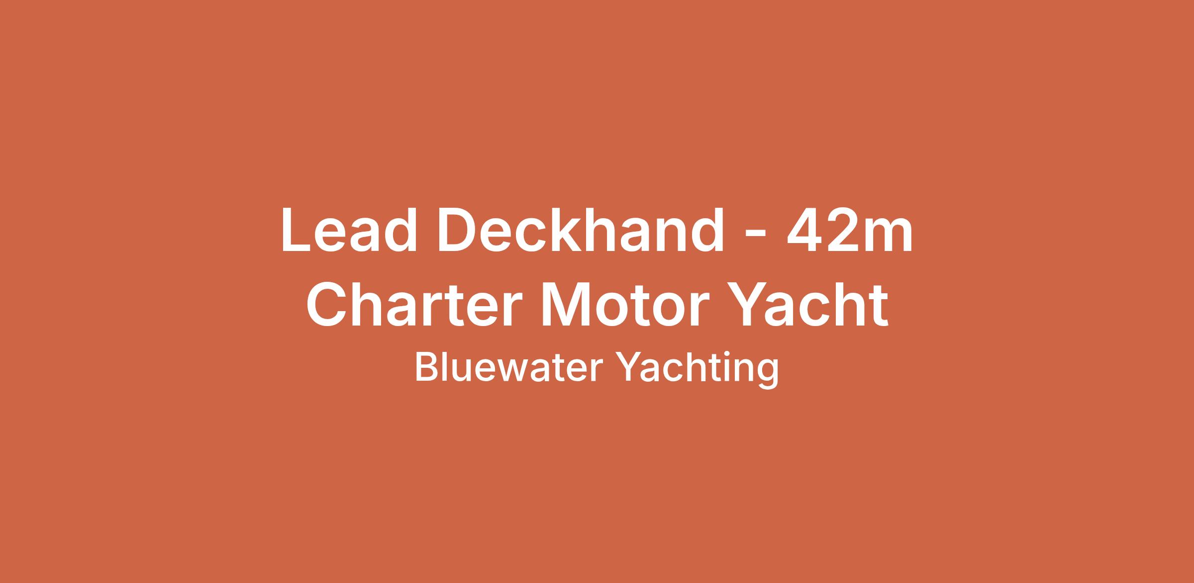 Seeking a Lead Deckhand for a 42‑metre private and charter motor yacht. Seasonal position starting ASAP, with the possibility of becoming permanent for the right candidate.