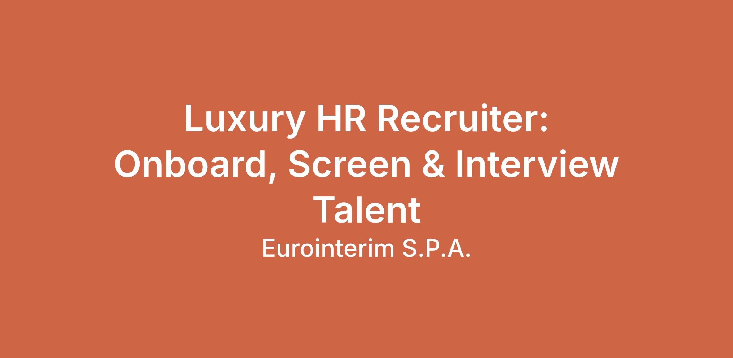 Un'agenzia di selezione HR cerca un profilo per l'ufficio del personale per attività di screening dei curricula, gestione dei colloqui e supporto all'onboarding. La figura ideale ha una laurea in discipline umanistiche, giuridiche o economiche e ottima conoscenza dell'inglese e di Excel. È richiesta esperienza di almeno un anno come HR recruiter. Offriamo contratto a tempo determinato a Fiesso d'Artico (VE).