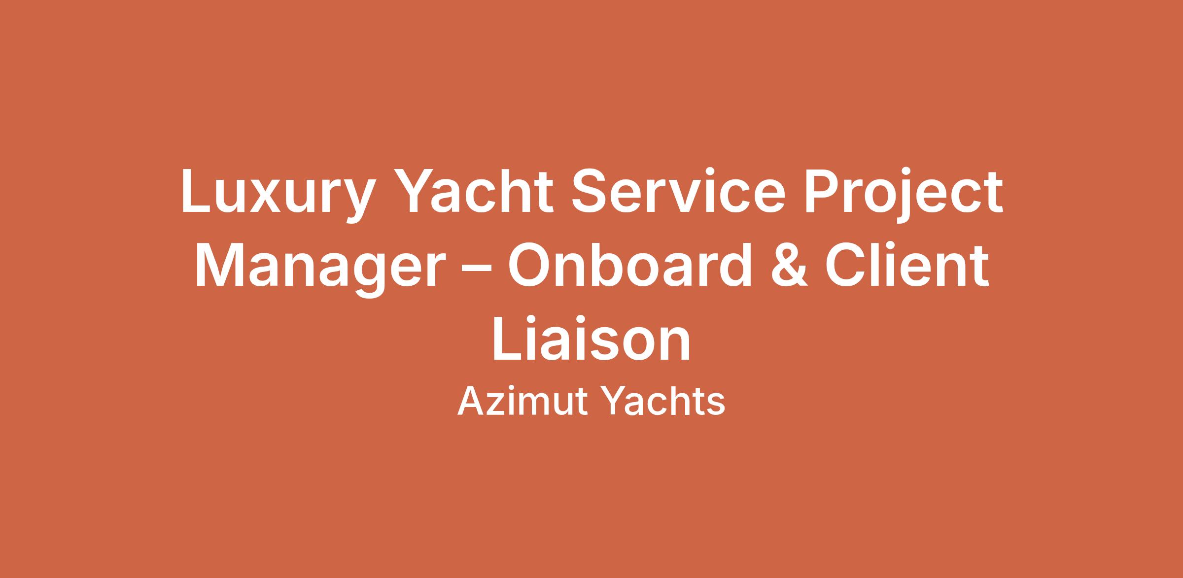 Luxury Yacht Service Project Manager – Onboard & Client Liaison