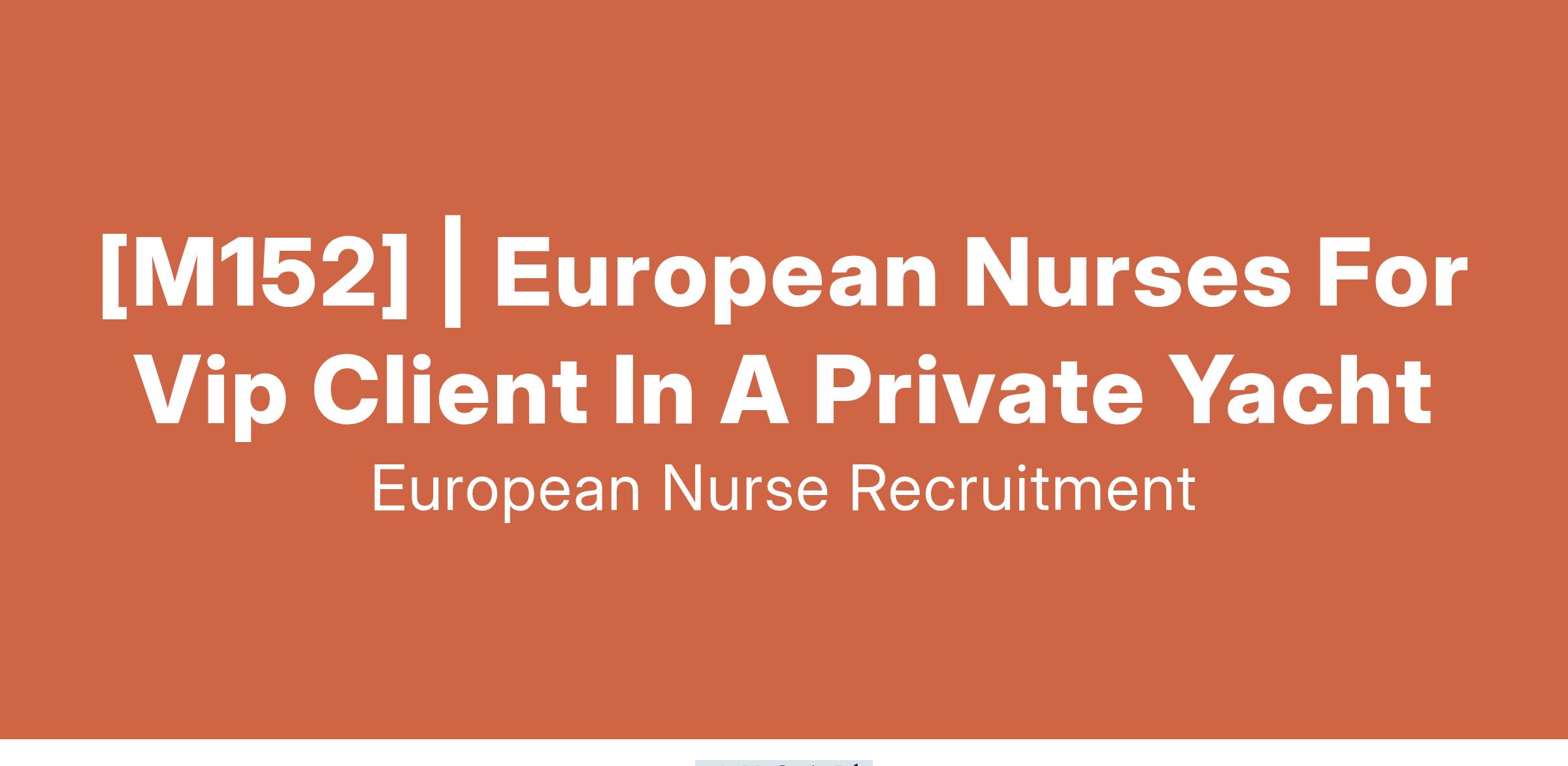 Job Description: We are seeking European Nurses to provide premium healthcare for a VIP client traveling internationally aboard a luxury private yacht.