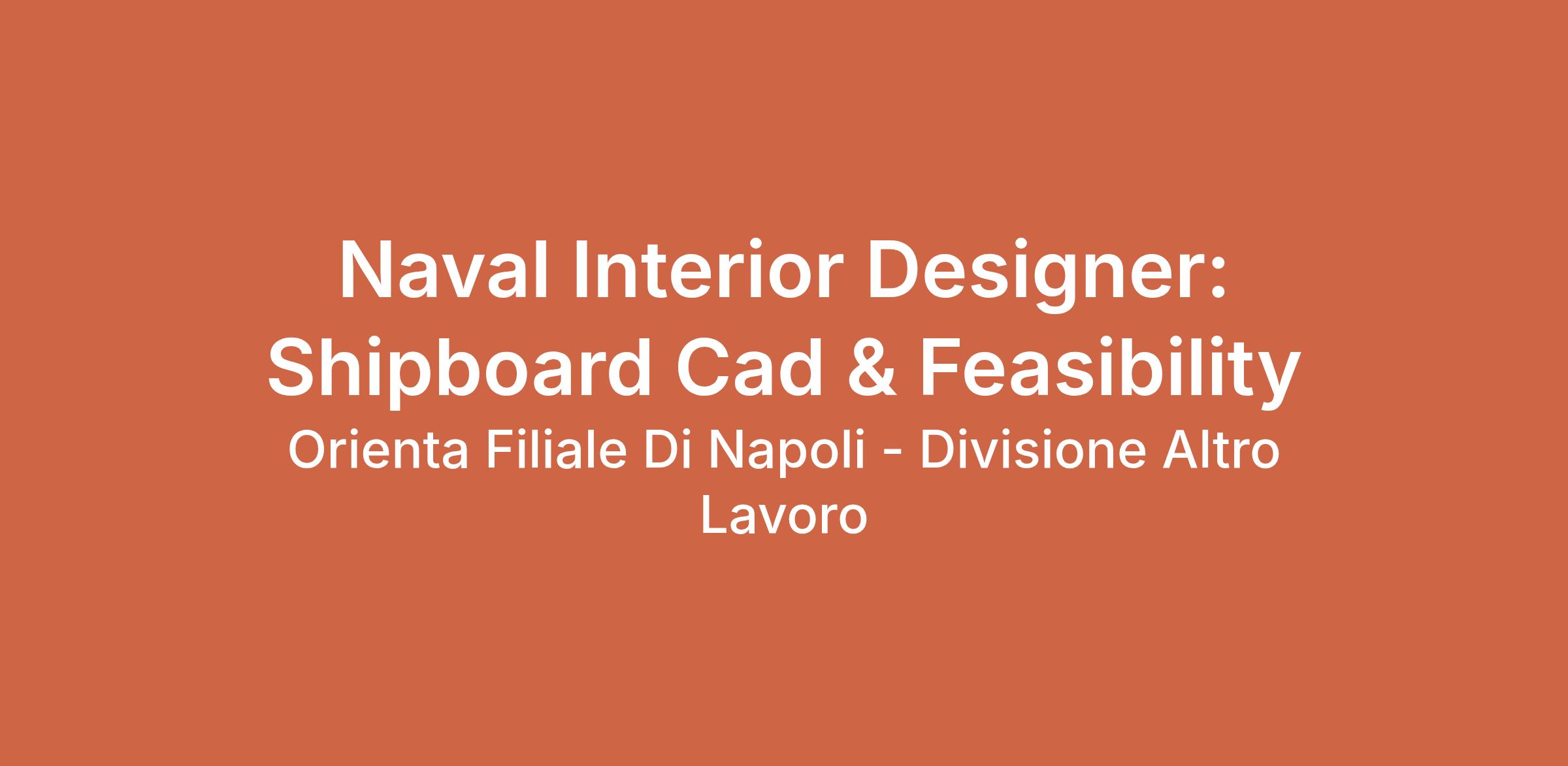 Una società di ingegneria navale è alla ricerca di un / una Interior Designer per lo sviluppo tecnico di arredi personalizzati. La posizione prevede la collaborazione con l'ufficio tecnico e il supporto alla produzione per garantire l'integrazione degli arredi in contesti navali.