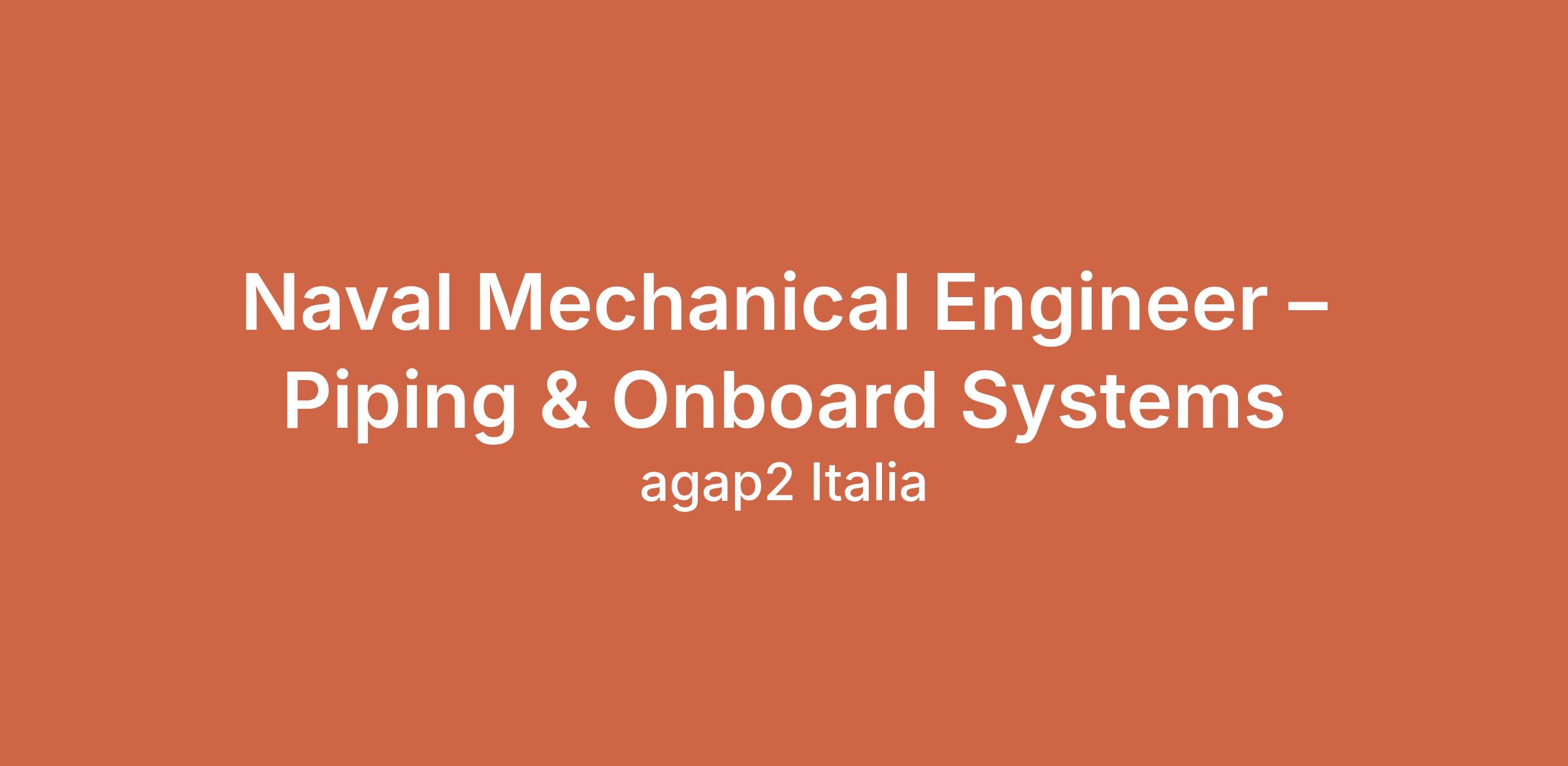 Naval Mechanical Engineer – Piping & Onboard Systems