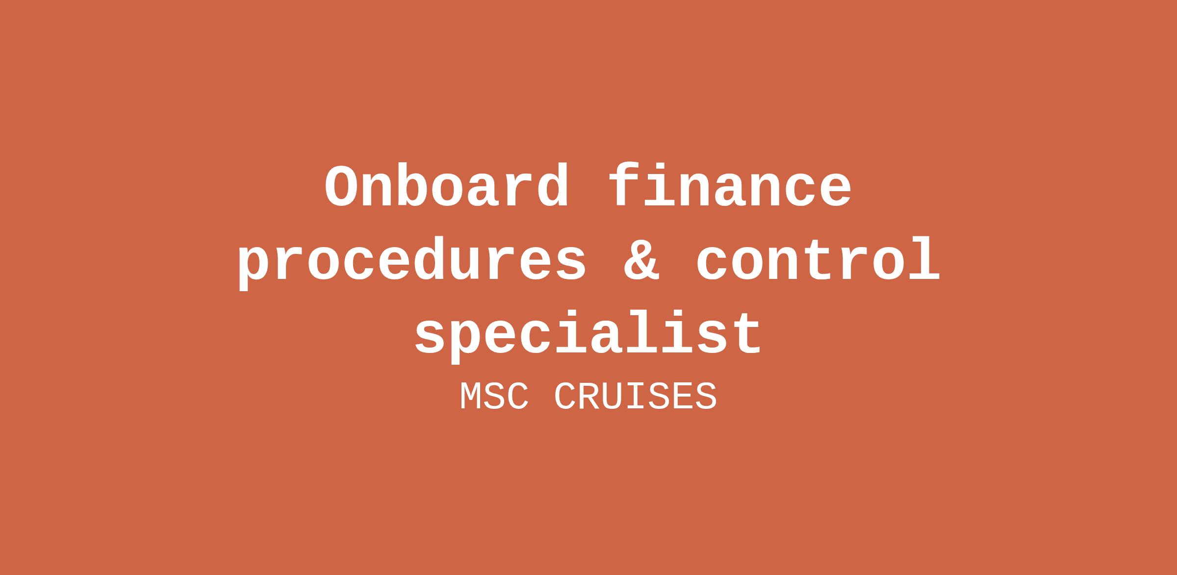 Onboard finance procedures & control specialist
