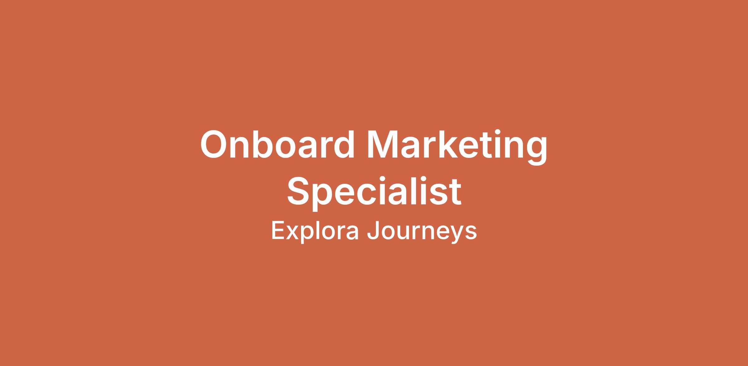Job PurposeAn exciting opportunity exists for a talented Onboard Marketing Specialist to join our newly created luxury travel brand Explora Journeys. This role is based in or office in Milan.