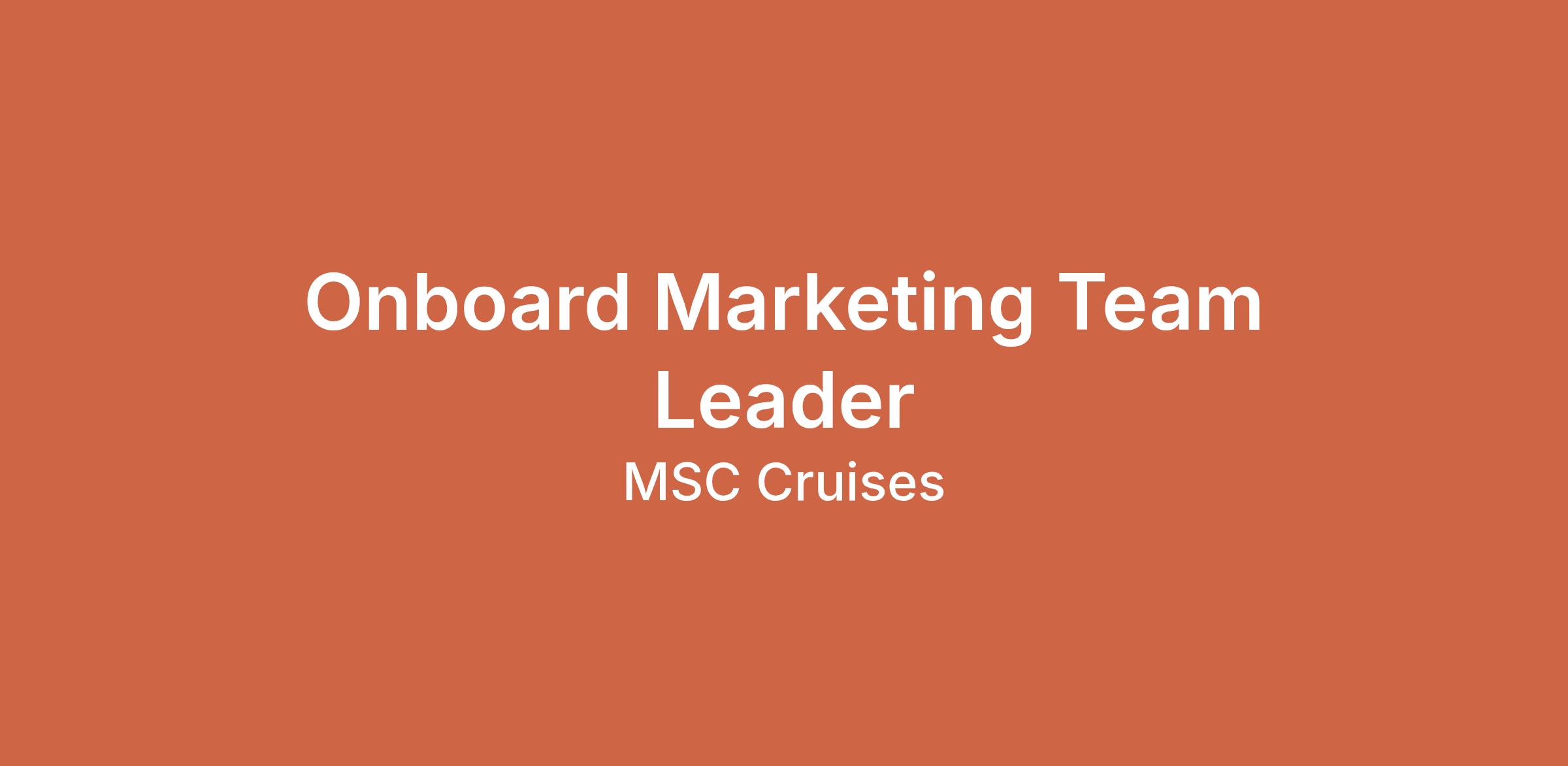 Job Purpose: The Onboard Marketing Team Leader oversees the Naples based team that delivers all onboard marketing communication for MSC Cruises, ensuring timely, high quality, and strategically prioritized communications across all onboard channels (print and digital) to inform guests and drive revenue.
