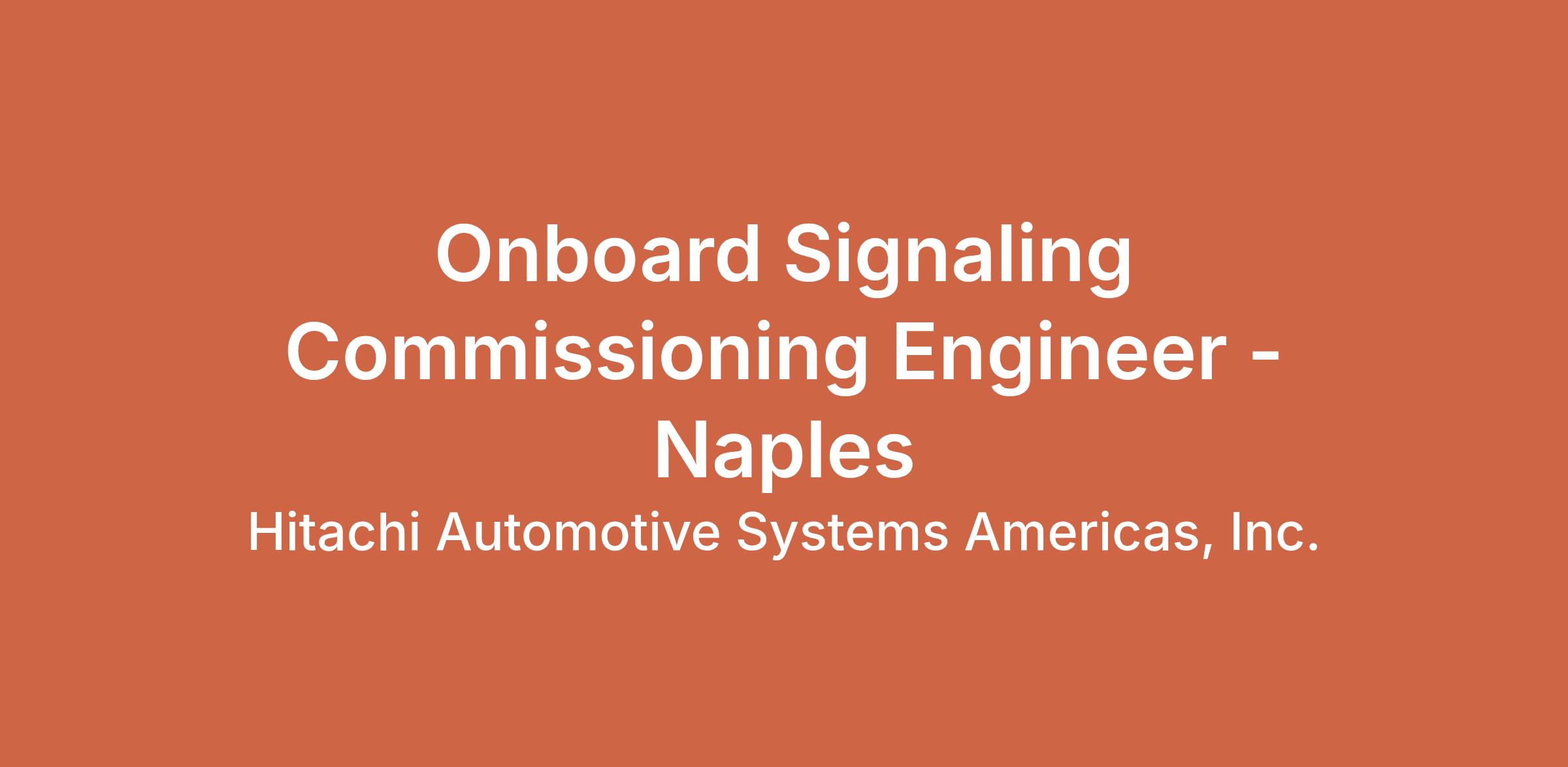 A leading transportation technology company is seeking a Commissioning Onboard Engineer in Naples, Italy. The successful candidate will manage on-board signaling system installations, requiring at least 2-3 years of relevant experience and a diploma in Electronics. Strong communication and teamwork skills are essential. Join a dynamic team working at the forefront of technology and digital transformation.