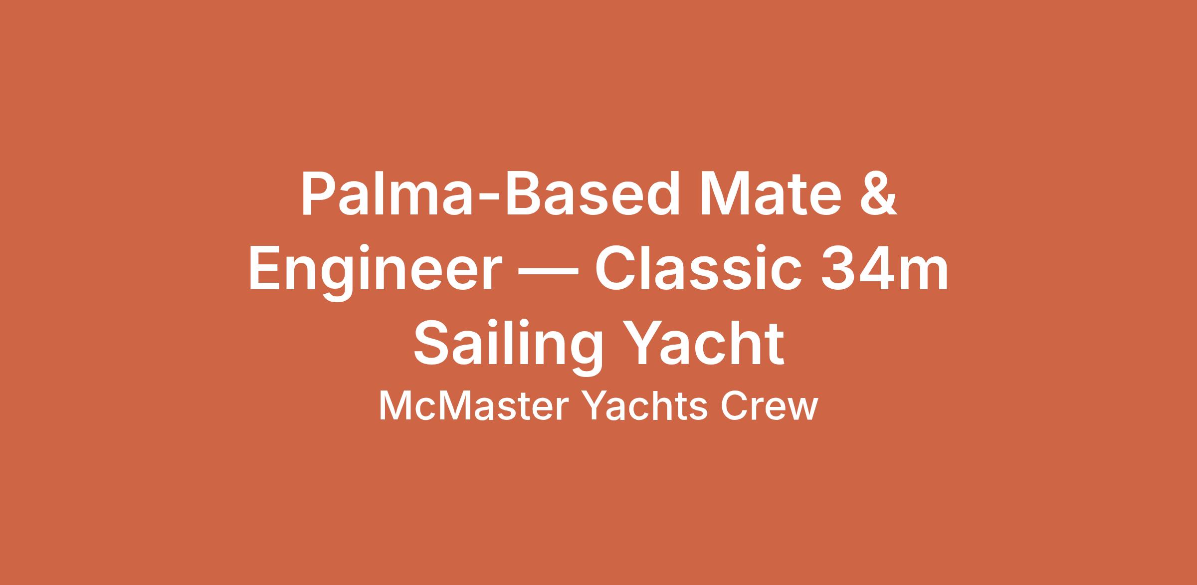 A prestigious yacht management company is seeking a Mate/Engineer for a 34m classic sailing yacht based in Palma, Spain. This position is perfect for those who enjoy sailing and want a stable lifestyle in Mallorca. Applicants should have essential sailing experience, Yacht Master certification, and be confident in rope work and maintenance tasks. The yacht operates year-round, with seasonal trips to Greece, and the current engineer is leaving after 7 years, creating this opportunity.#J-18808-Ljbffr