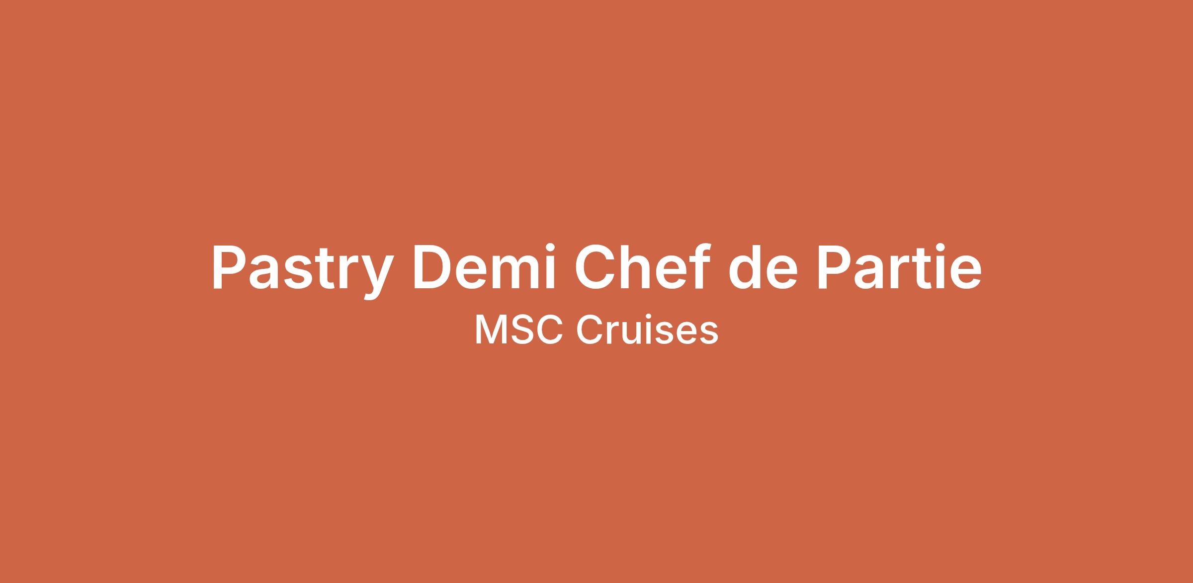 1. Proven experience as a Pastry Demi Chef De Partie in a similar kitchen environment, ideally within the cruise industry.