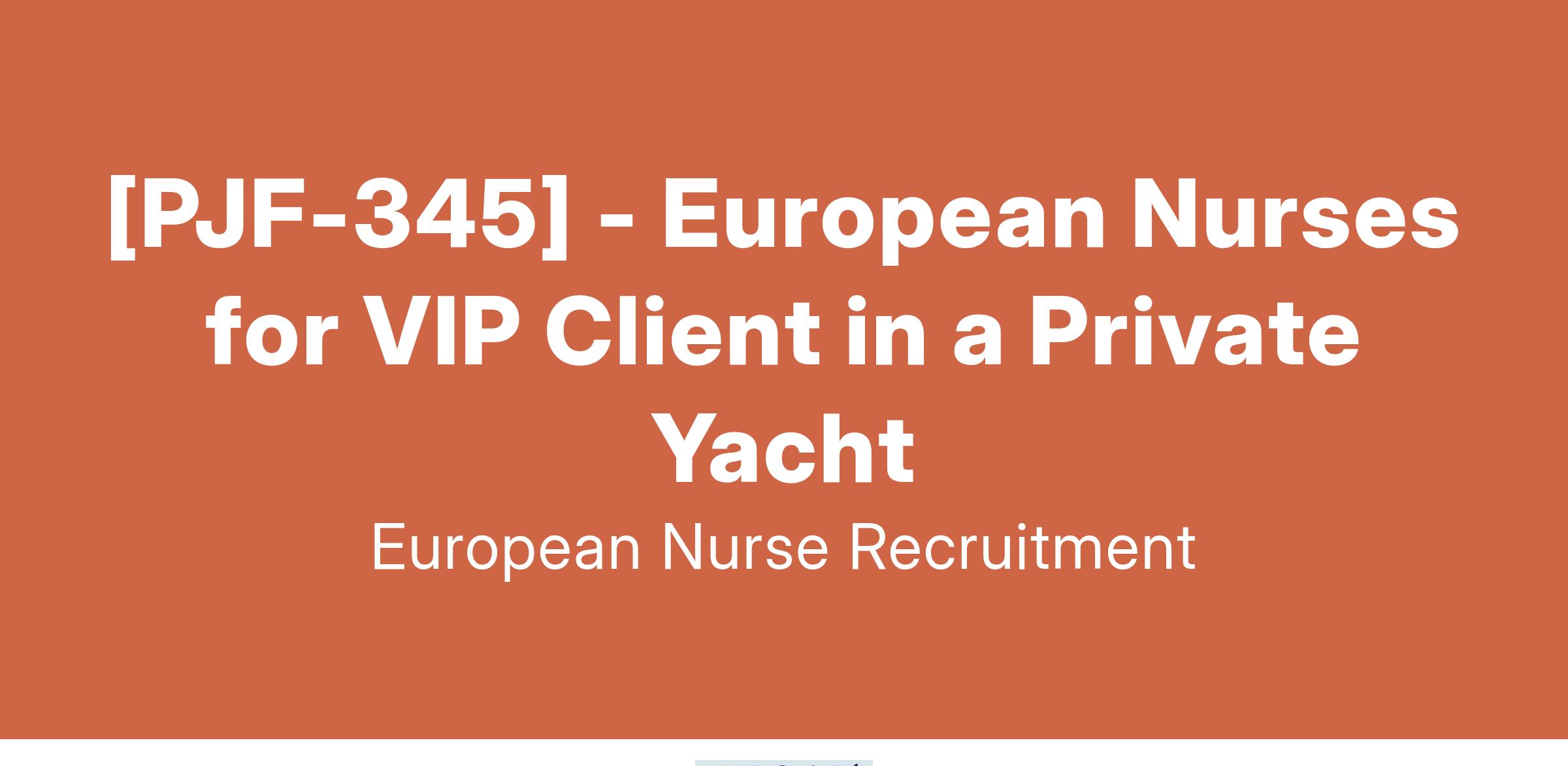 We are seeking European Nurses to provide premium healthcare for a VIP client traveling internationally aboard a luxury private yacht.