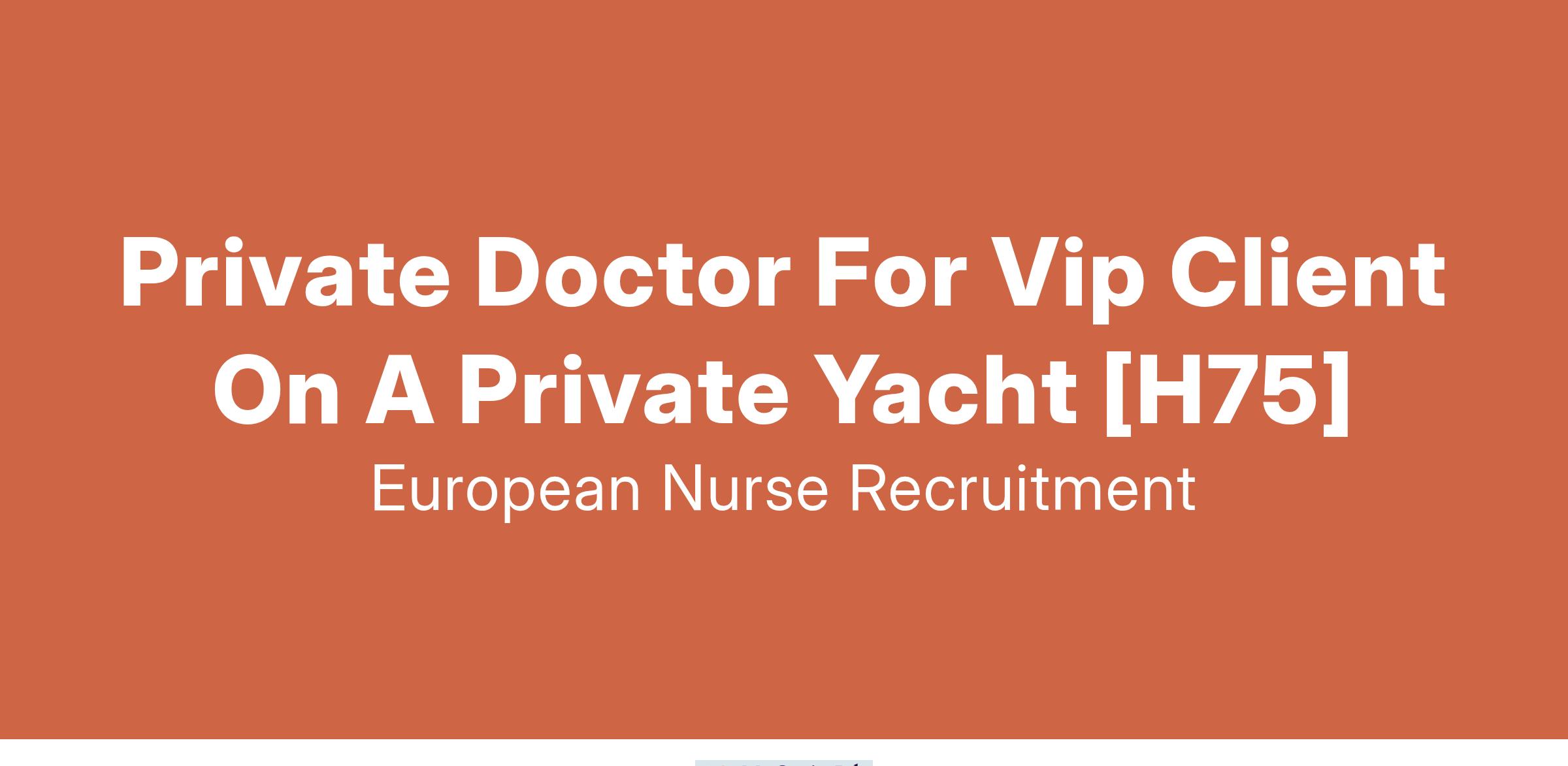 We are seeking a Private Doctor to provide premium 24/7 medical care to a VIP client traveling internationally aboard a luxury private yacht.