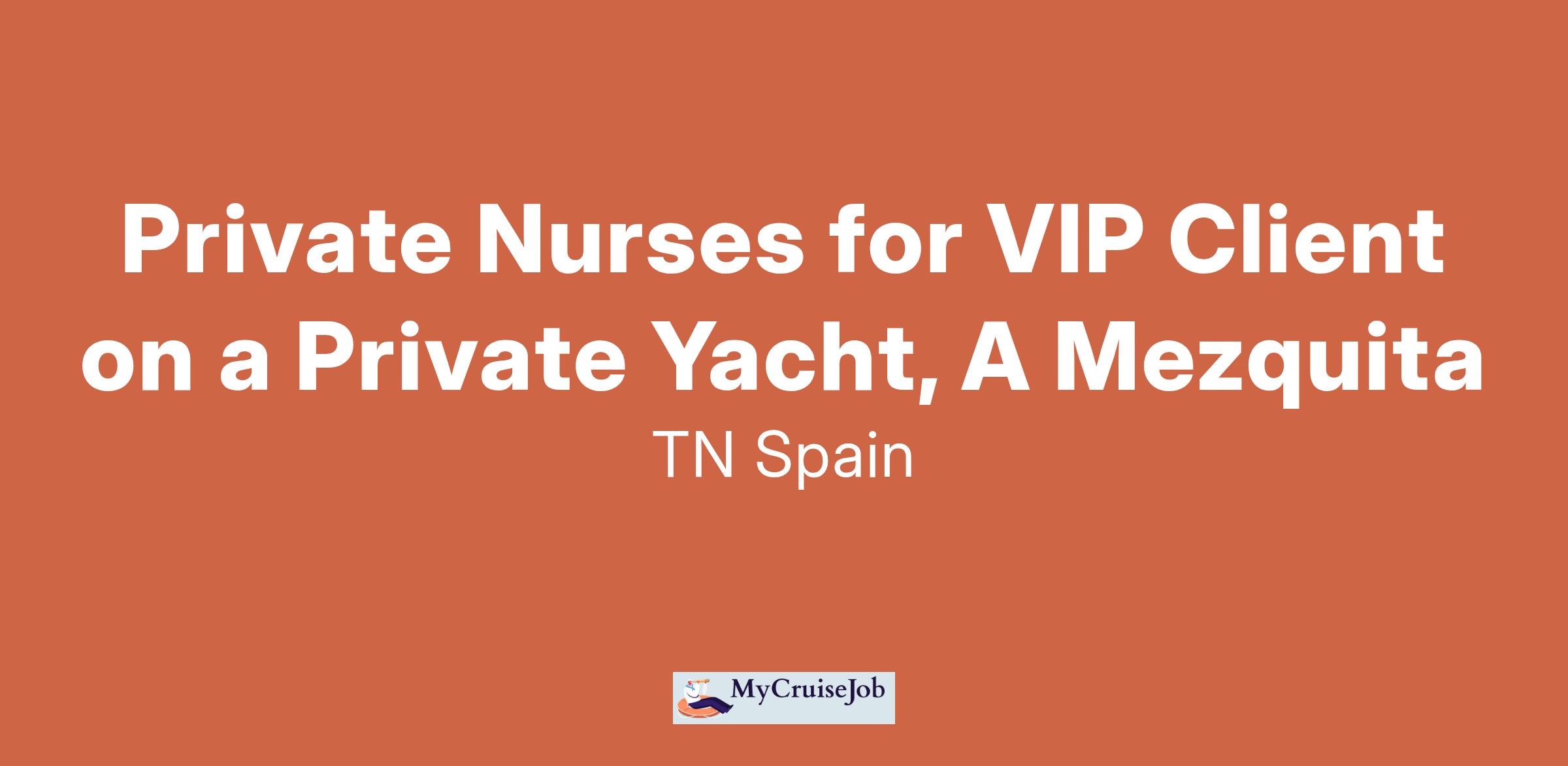 We are seeking Private Nurses to provide premium healthcare for a VIP client traveling internationally aboard a luxury private yacht.