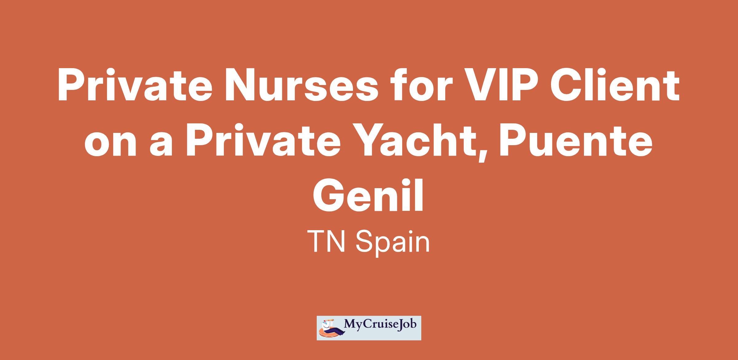 We are seeking Private Nurses to provide premium healthcare for a VIP client traveling internationally aboard a luxury private yacht.