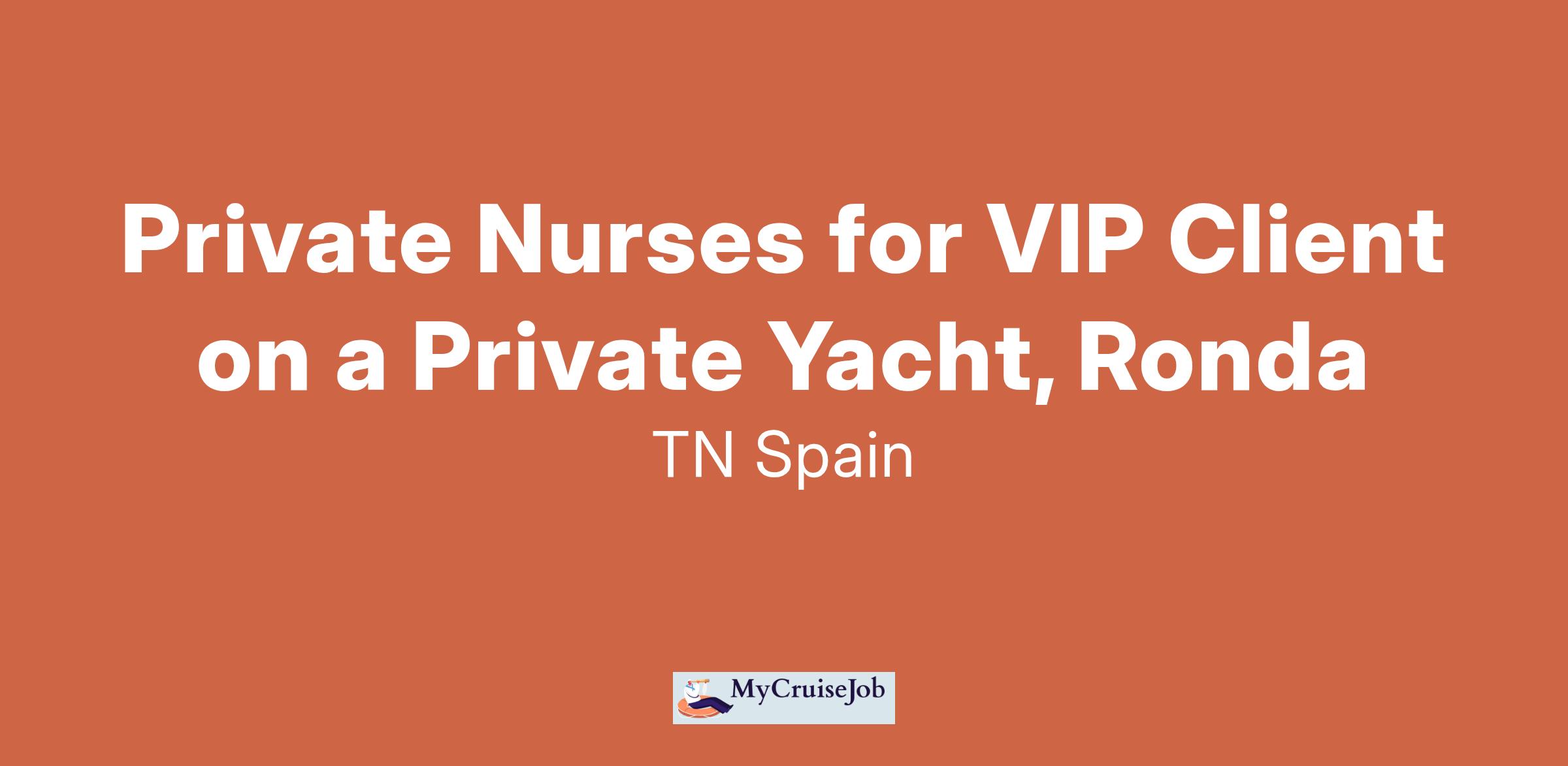 We are seeking Private Nurses to provide premium healthcare for a VIP client traveling internationally aboard a luxury private yacht.