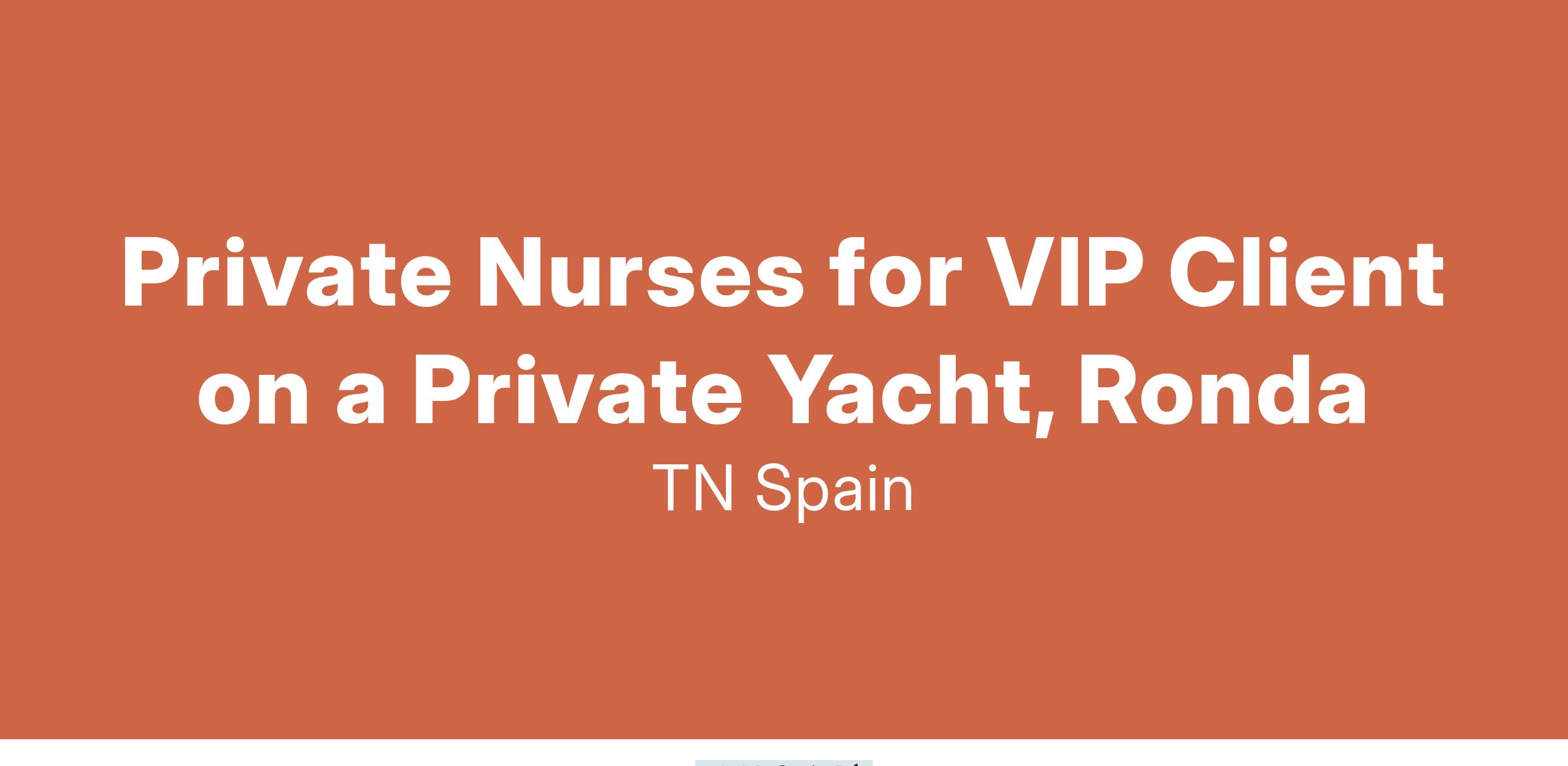 We are seeking Private Nurses to provide premium healthcare for a VIP client traveling internationally aboard a luxury private yacht.