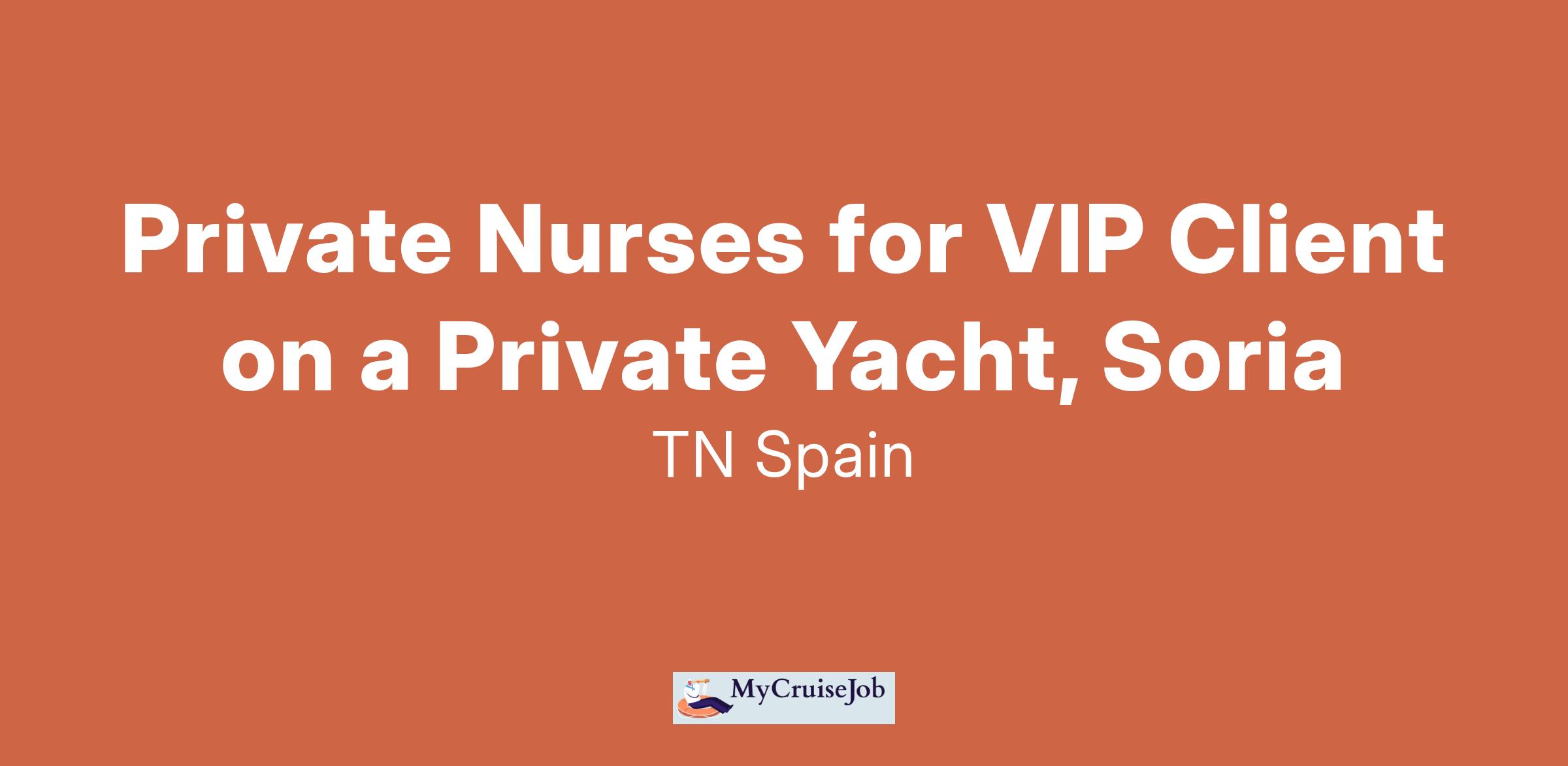 Private Nurses for VIP Client on a Private Yacht, Soria Client:
