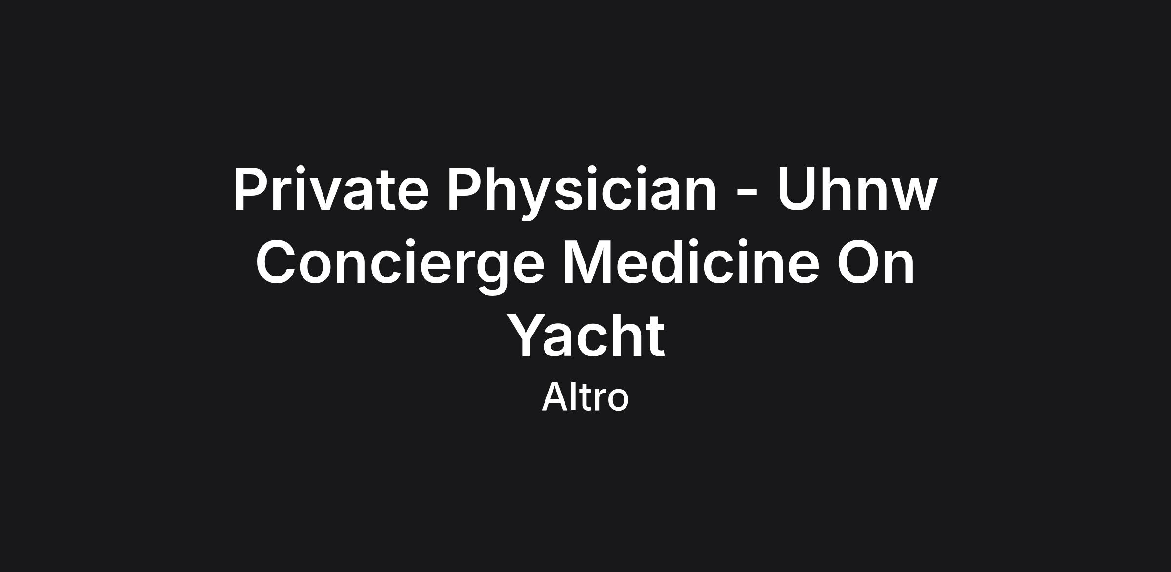 Private Physician - Uhnw Concierge Medicine On Yacht