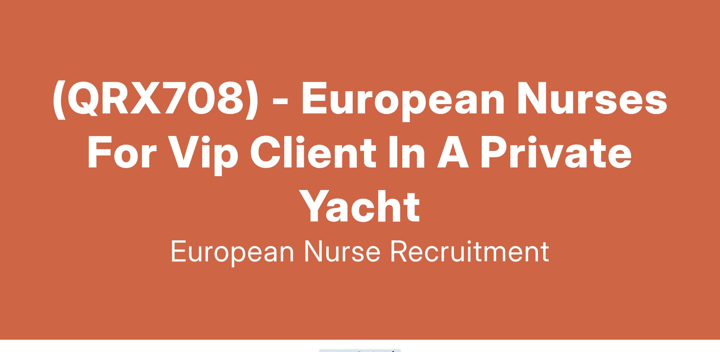 We are seeking European Nurses to provide premium healthcare for a VIP client traveling internationally aboard a luxury private yacht. This exclusive role offers a unique chance to combine your professional expertise with the excitement of exploring stunning destinations, always following the warmth and sunshine of the season. You could be traveling to breathtaking locations such as: