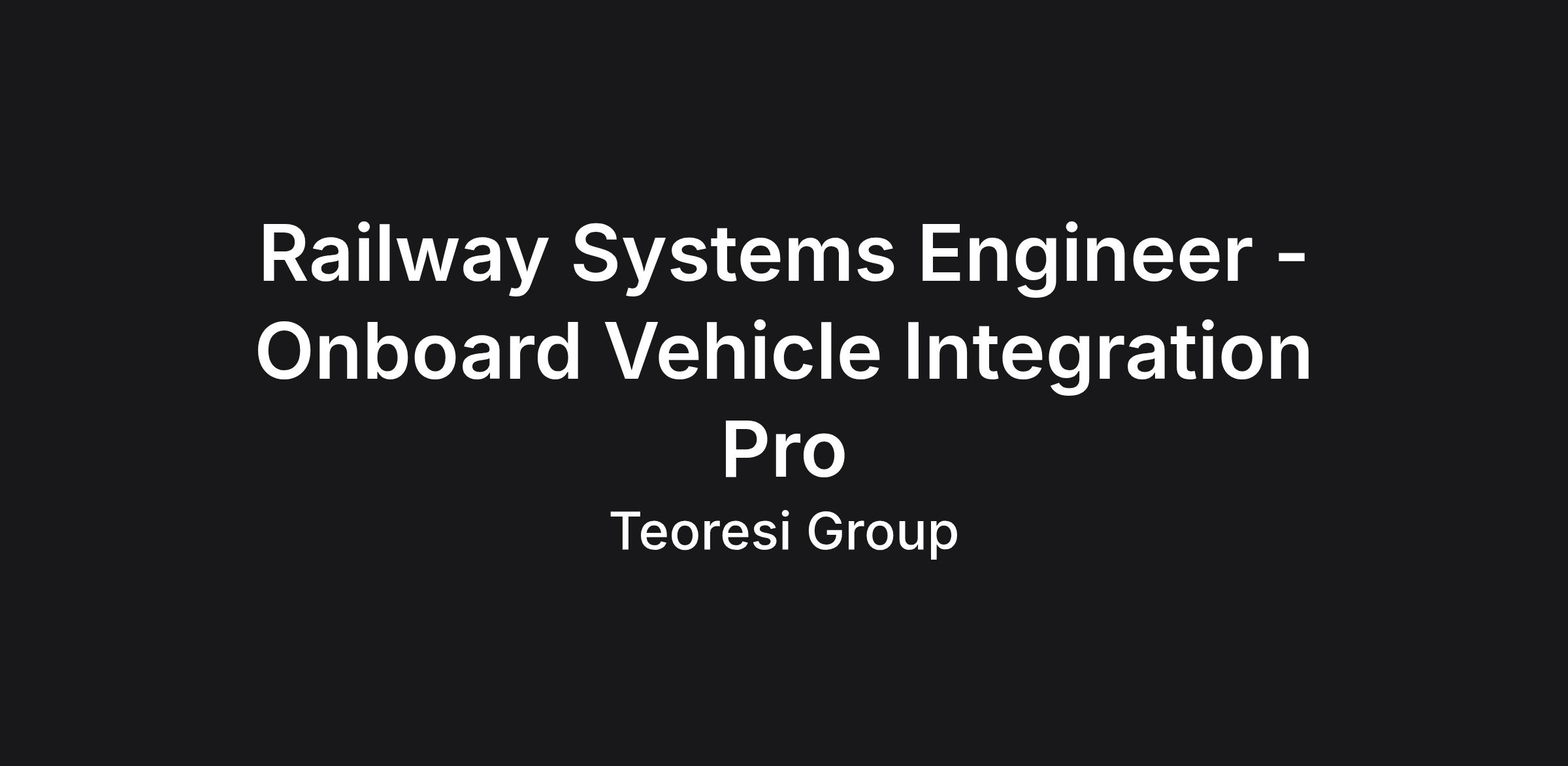 Teoresi Group è alla ricerca di un sistemista con esperienza nel settore ferroviario per integrare e validare sistemi di bordo veicolo. Le responsabilità includono l'analisi dei requisiti di sistema, supporto alle attività di test e verifica. È richiesta un'esperienza minima di 3 anni e una buona conoscenza della lingua inglese. Si offre contratto full time indeterminato e benefit come assicurazione sanitaria.#J-18808-Ljbffr