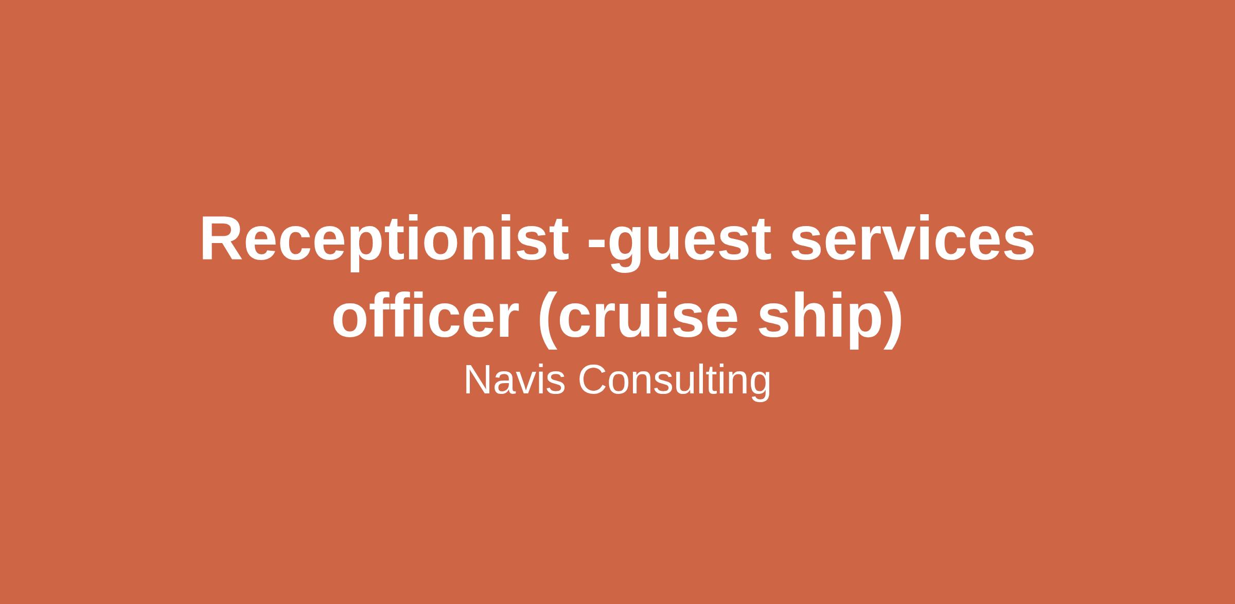 Minimum of 1 year experience as a Receptionist in a 4-star or 5-star hotel or cruise ship operation.