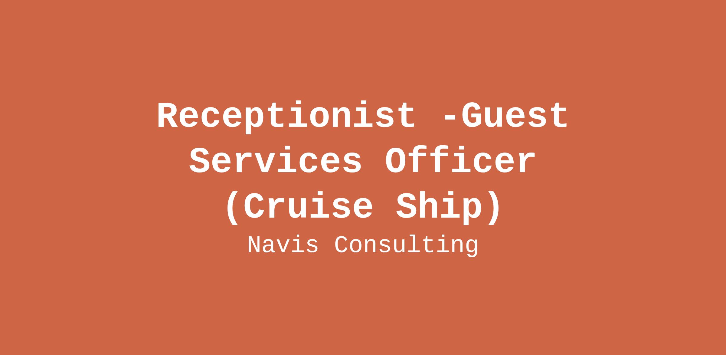 Minimum of 1 year experience as a Receptionist in a 4-star or 5-star hotel or cruise ship operation.