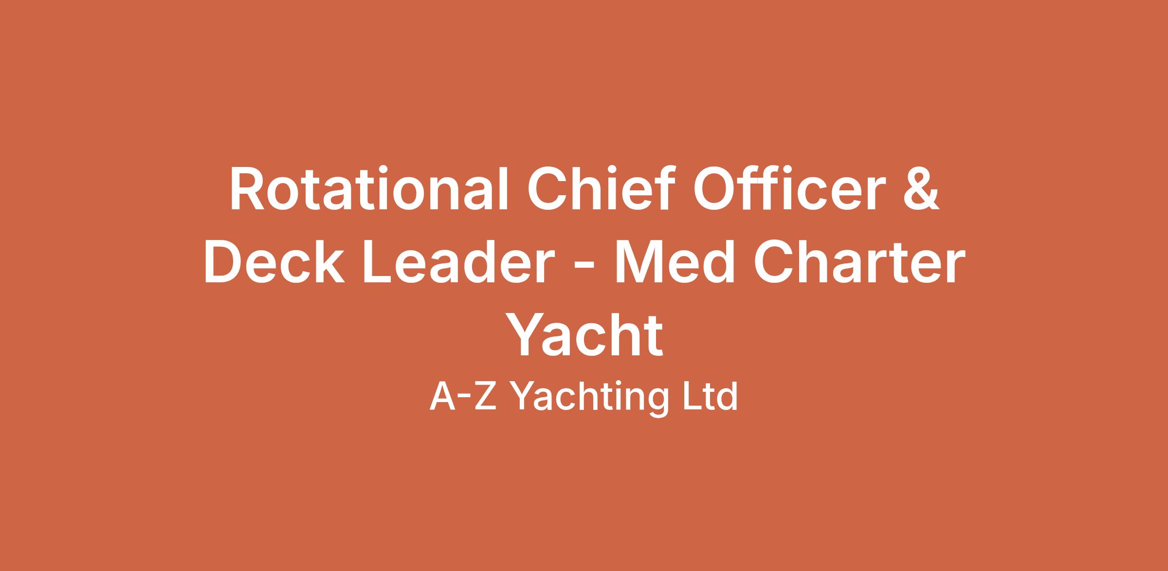 A luxury yachting company is seeking a Rotational Chief Officer for a 40m+ Private/Charter yacht based in Spain. This role involves managing a mixed nationality crew and ensuring a smooth operation on deck during Mediterranean cruises. We prefer candidates with strong sailing and leadership skills, and those who have started their OOW modules. The position offers a rotational schedule and a salary dependent on experience, with a non-smoking policy aboard.#J-18808-Ljbffr