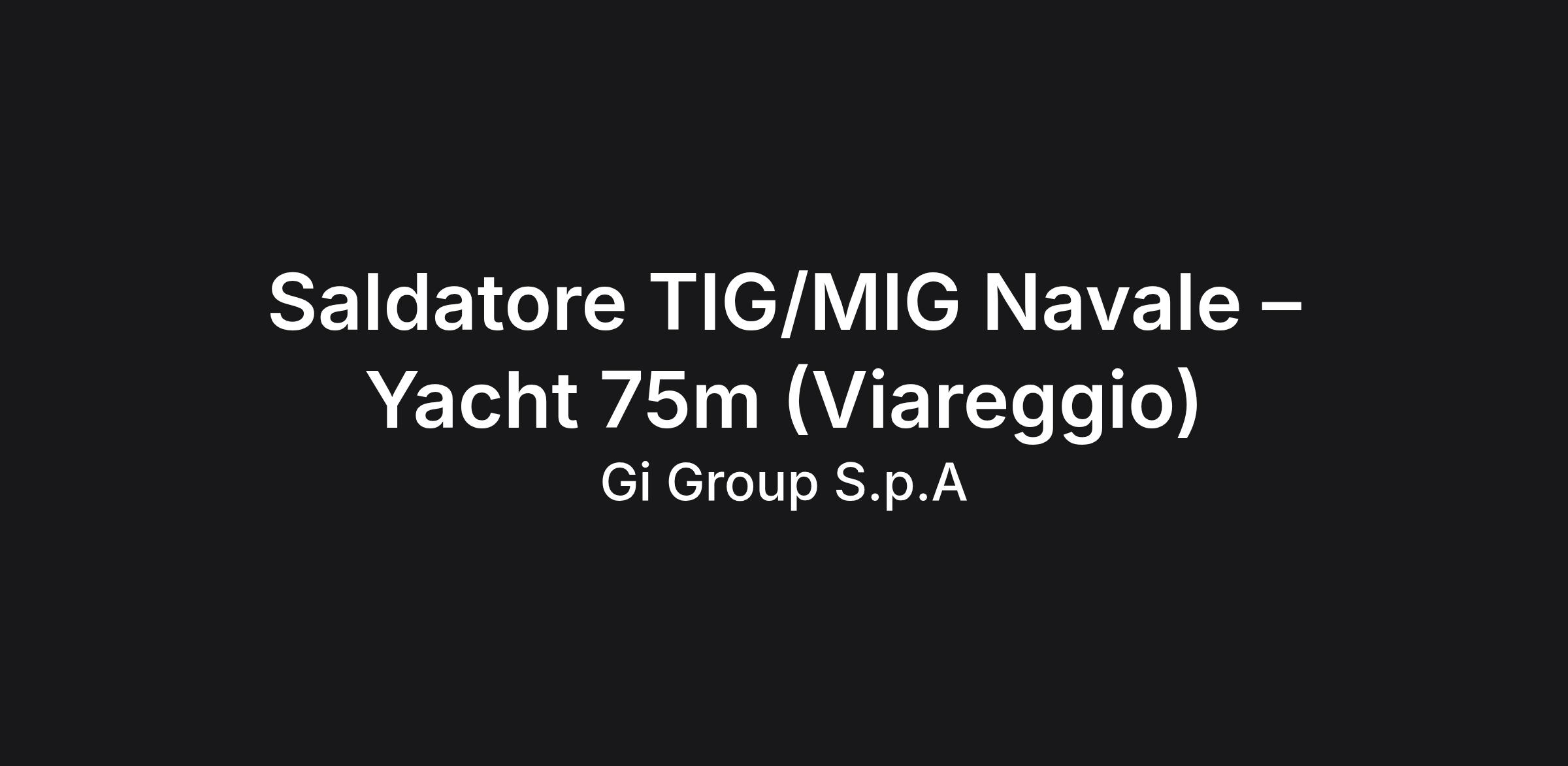 Un'importante agenzia di lavoro è alla ricerca di Saldatori a TIG esperti per la costruzione di un yacht di 75 metri a Viareggio. I candidati devono avere esperienza nella saldatura a elettrodo e TIG, insieme alla capacità di leggere disegni tecnici e lavorare in squadra. Offriamo un contratto di somministrazione a tempo determinato di 3 mesi, con possibilità di proroga. L'orario di lavoro è full time, dal lunedì al venerdì.