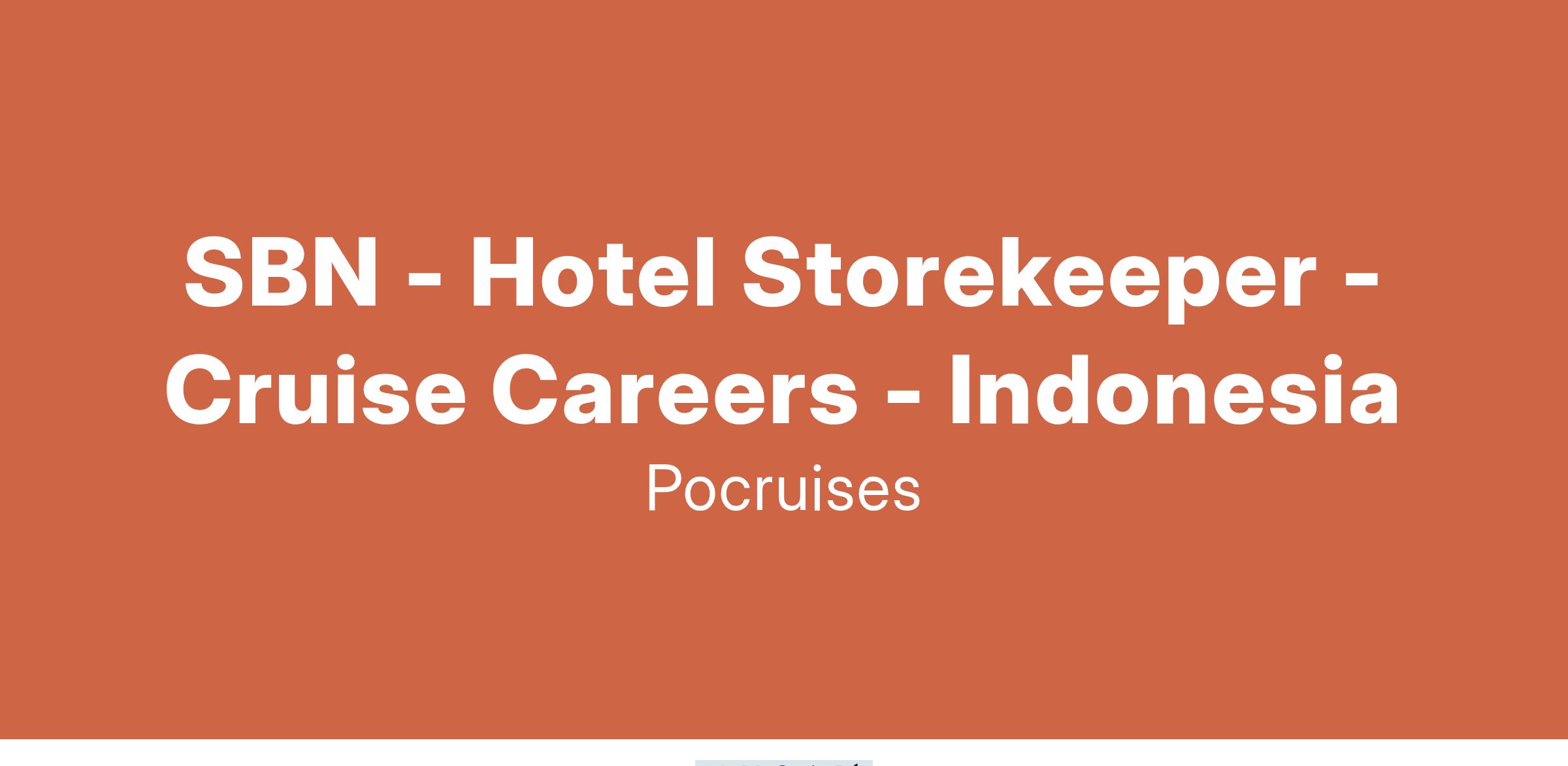 SBN - Hotel Storekeeper - Cruise Careers - Indonesia