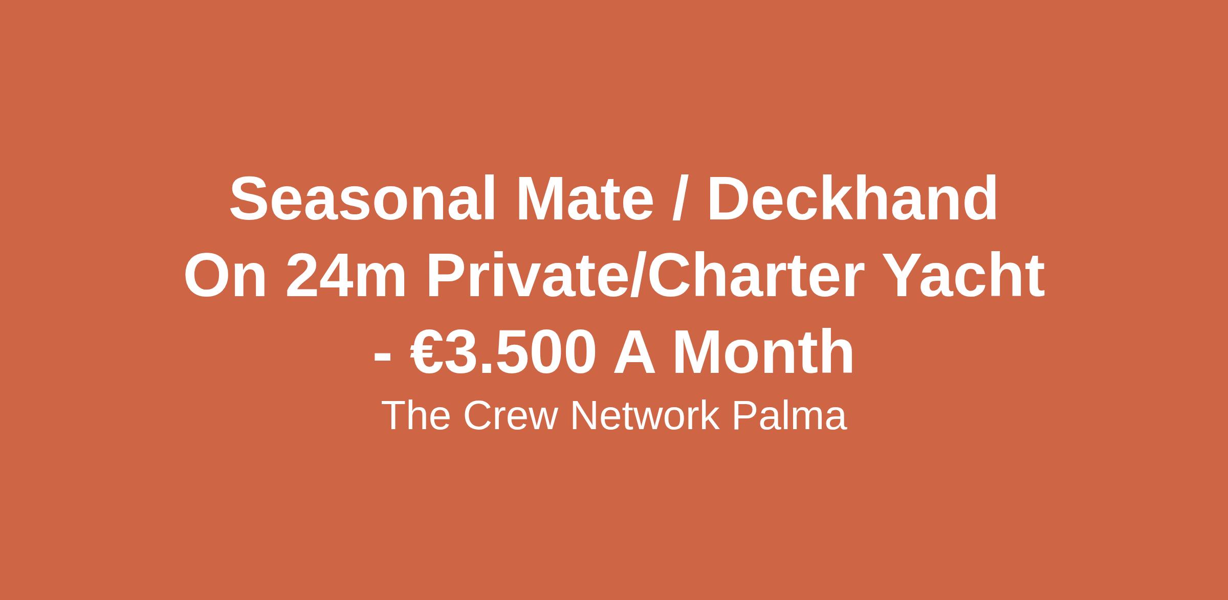 Seasonal Mate / Deckhand On 24m Private/Charter Yacht - €3.500 A Month