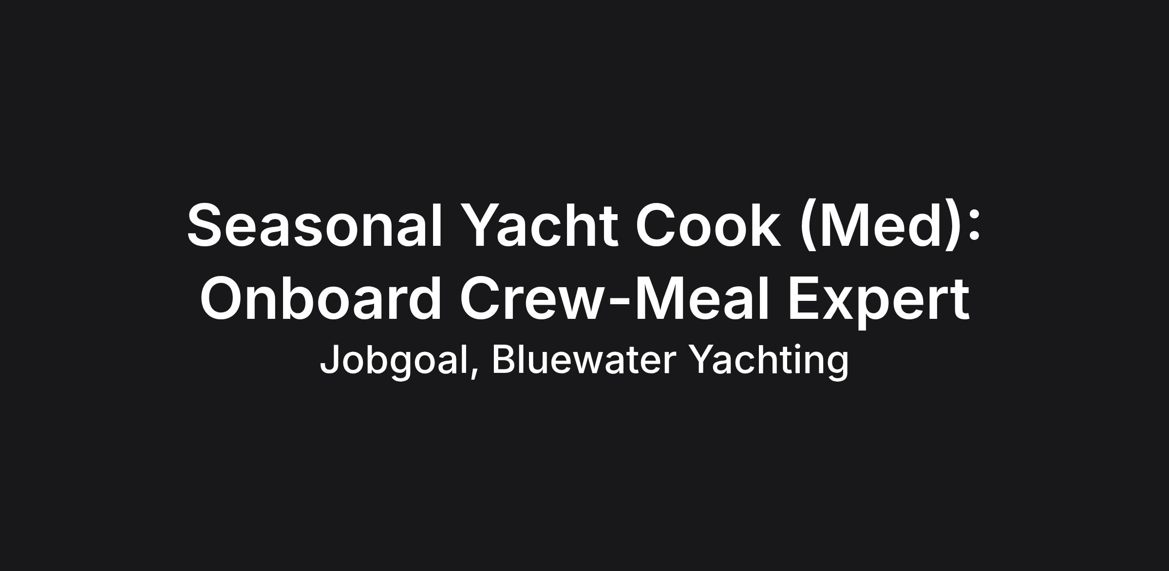 Seasonal Yacht Cook (Med): Onboard Crew-Meal Expert
