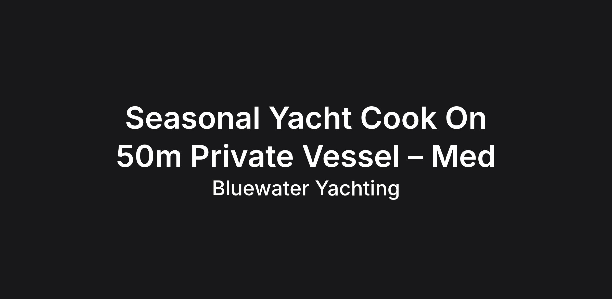 Seasonal Yacht Cook On 50m Private Vessel – Med Bluewater Yachting - Bologna, IT