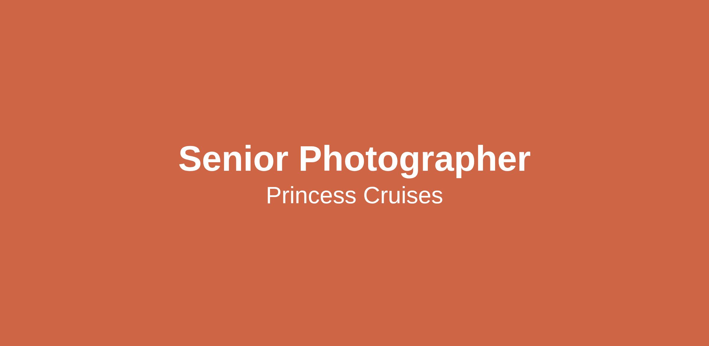 - The Senior Photographer also participates in training and staff meetings, demonstrating leadership to the Photo-Video team, and participating in required Princess U courses. They ensure image count targets and quality are achieved at every photographic event, perform all Photo-Video inventories, organise and maintain secure stockrooms, lockers, and storage areas, take accountability for protecting issued equipment and Company assets, resolve technical issues, and demonstrate accurate knowledge of Photo Lab opening and closing procedures.