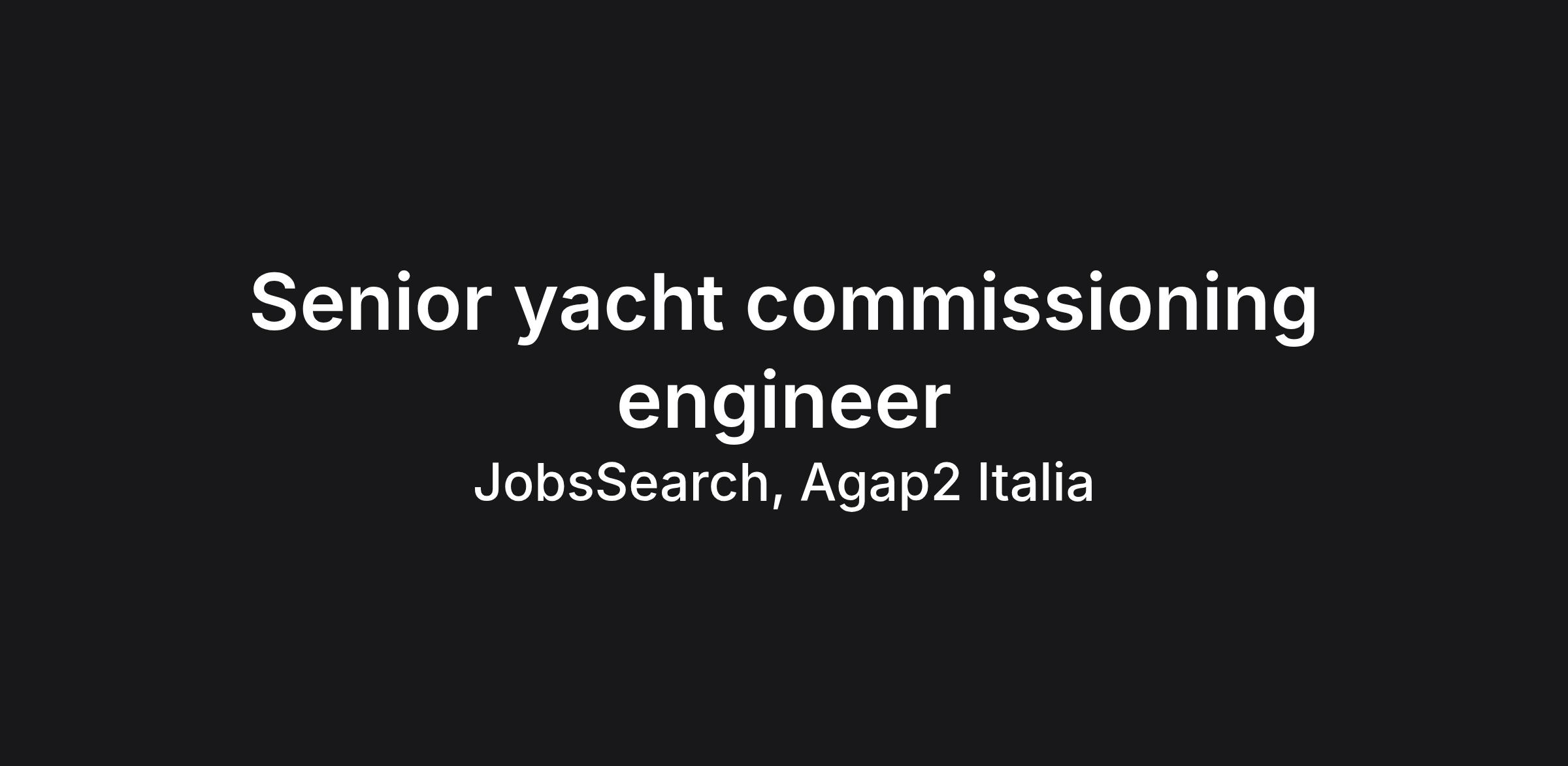 Qualified Marine, Mechanical or Electrical Engineer, or equivalent technical background. 10+ years of experience in yacht construction, refit, commissioning or marine systems supervision. Strong knowledge of marine mechanical, electrical and auxiliary systems. Proven experience attending dock trials and sea trials. Ability to work onsite in a shipyard environment and coordinate multiple stakeholders. Strong technical reporting skills and detail-oriented approach. Very good level of English communication (spoken and written). Italian is considered a plus. The world needs you AGAP2 is an equal opportunities employer. We believe that diversity is a key value and we are committed to fostering an inclusive working environment where every individual can contribute their unique perspective. Applications are welcomed regardless of age, gender, nationality, disability, sexual orientation, religion or marital status, with particular attention to candidates belonging to protected categories under Italian Law 68/99. Personal data will be processed in accordance with EU Regulation 2016/679 (GDPR).