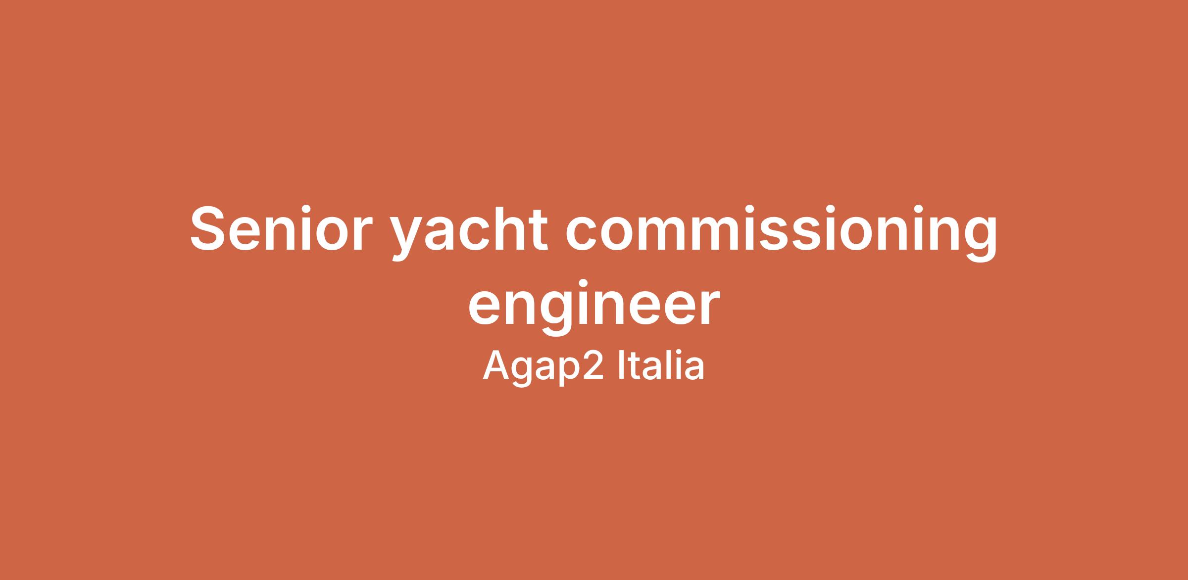 We are looking for a Commissioning Engineer with +10 years of experience to support the final phases of construction of a +80m motor yacht new build, overseeing activities during final installation, commissioning, dock trials and sea trials.