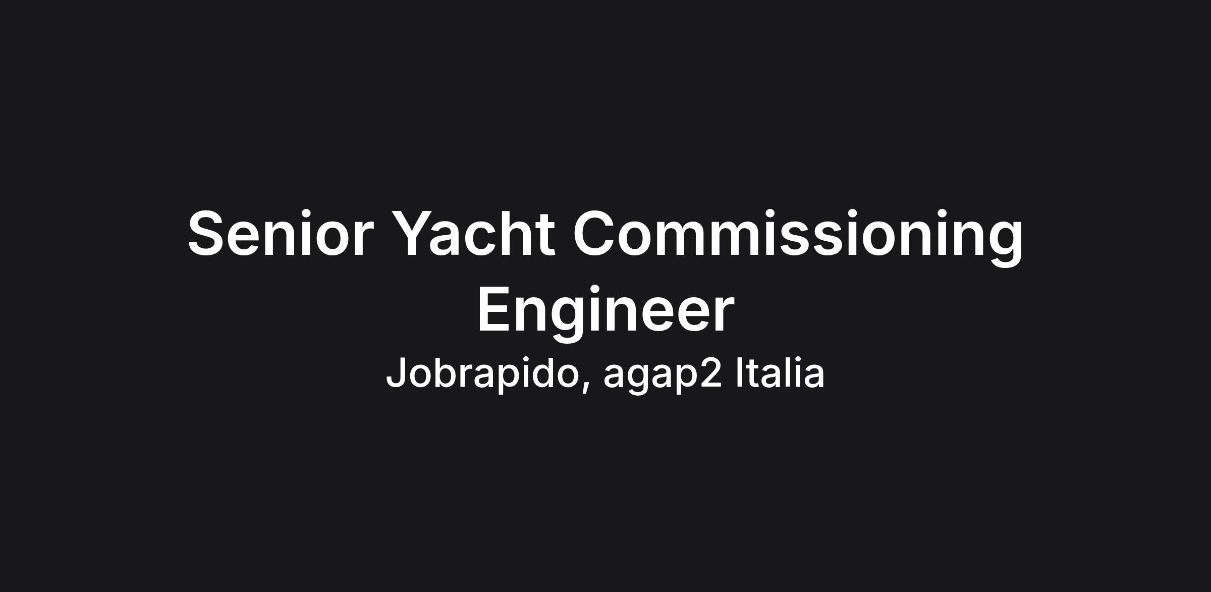 We are looking for a Commissioning Engineer with +10 years of experience to support the final phases of construction of a +80m motor yacht new build , overseeing activities during final installation, commissioning, dock trials and sea trials .