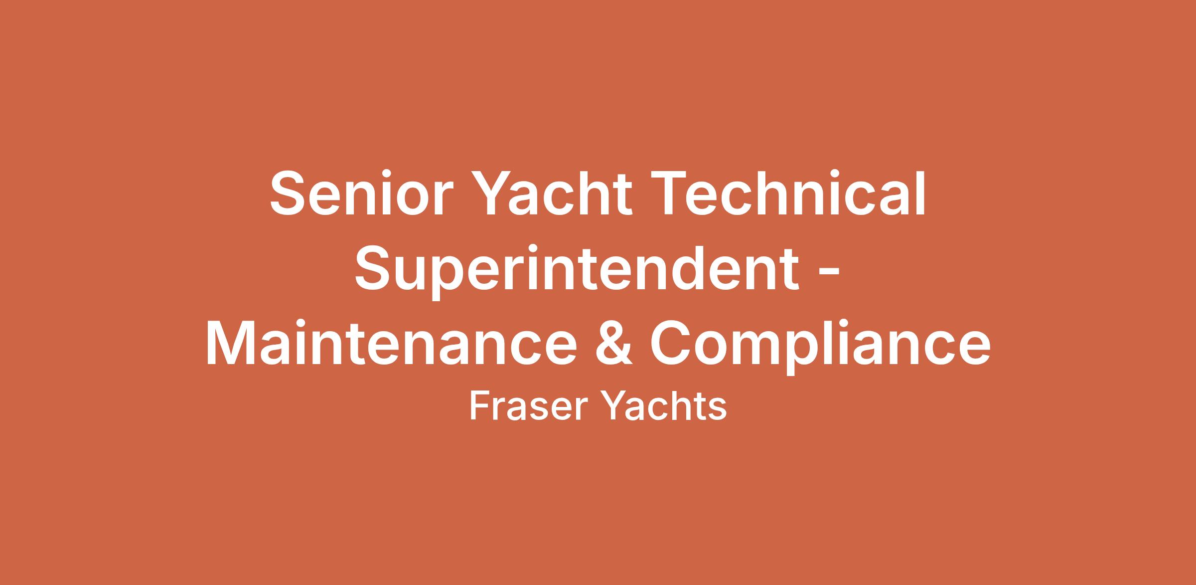 The Technical Superintendent is responsible for the oversight and coordination of all technical aspects of Fraser-managed superyachts. This includes ensuring vessels technical compliance, maintenance planning, refit planning and support, and technical performance monitoring. The role requires proactive engagement with captains, crew, shipyards, and suppliers to maintain the highest standards of safety, reliability, and operational excellence.