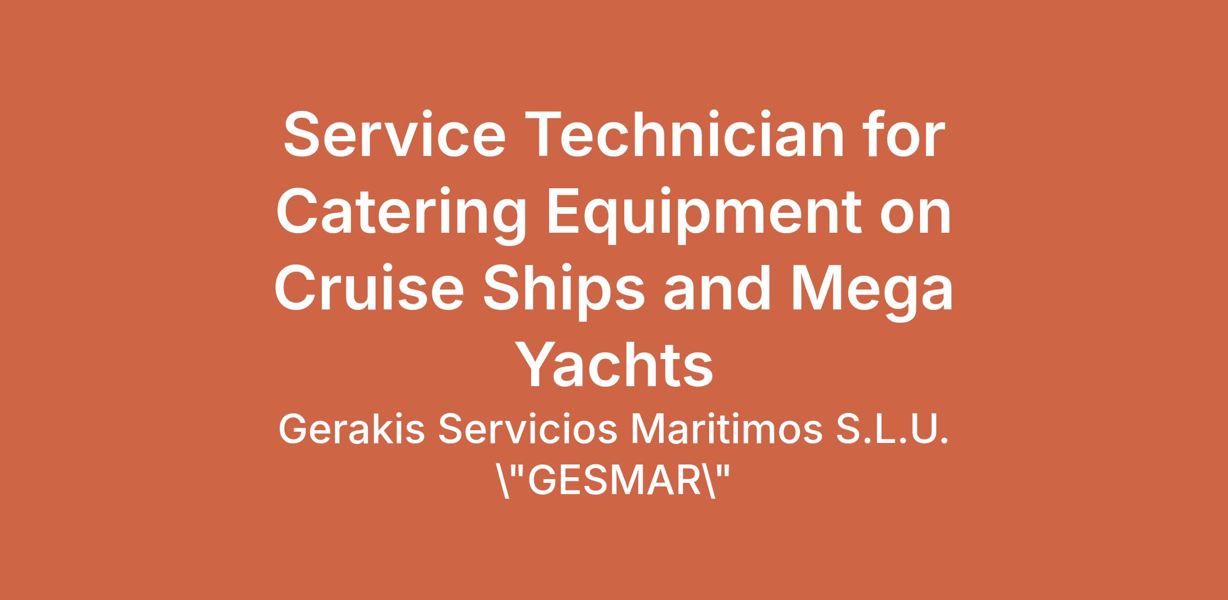 Maintenance Technician for Catering Equipment on Cruise Ships and Mega Yachts