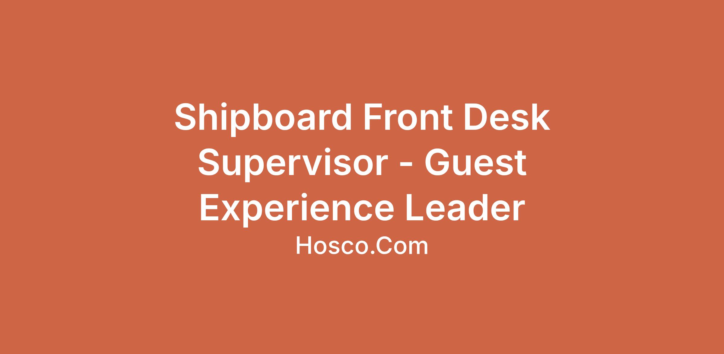 Shipboard Front Desk Supervisor - Guest Experience Leader