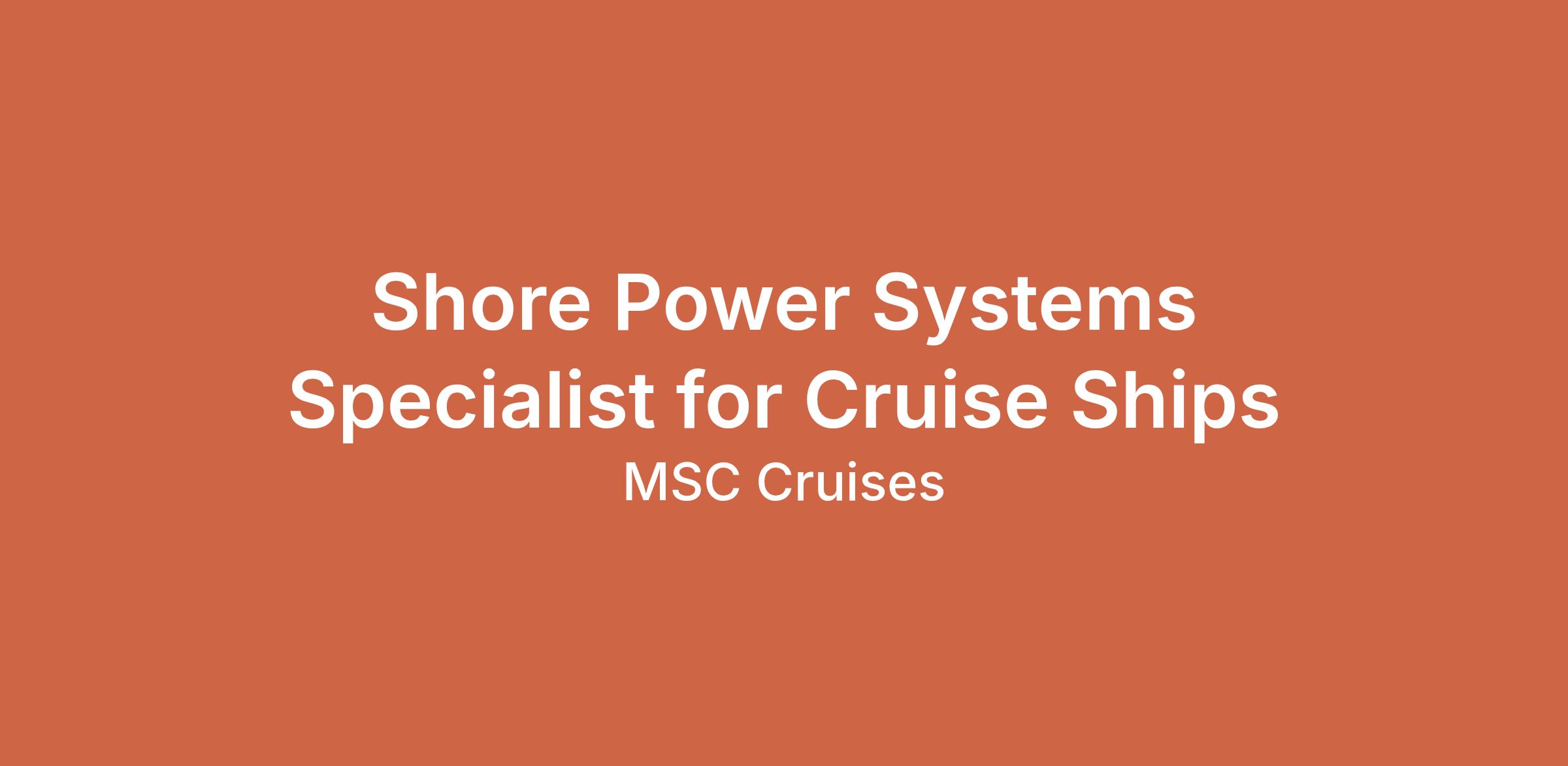 Shore Power Systems Specialist for Cruise Ships