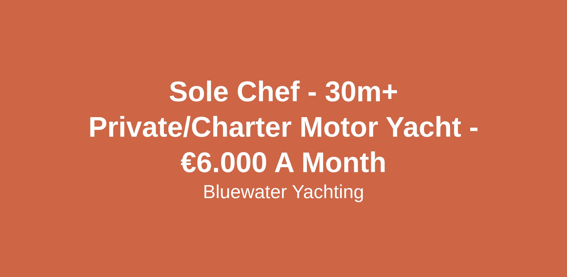 Sole Chef - 30m+ Private/Charter Motor Yacht - €6.000 A Month