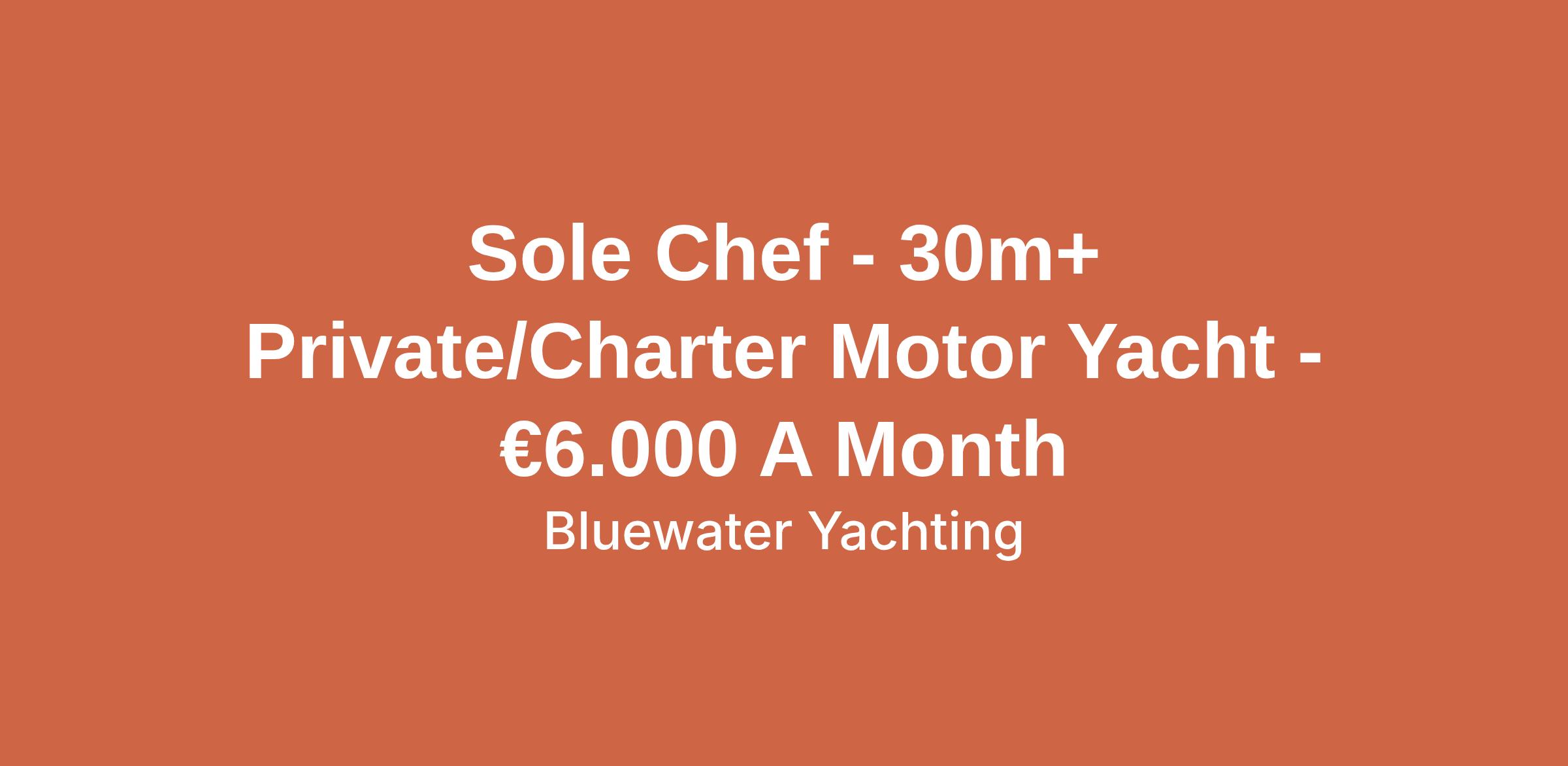 Sole Chef - 30m+ Private/Charter Motor Yacht - €6.000 A Month