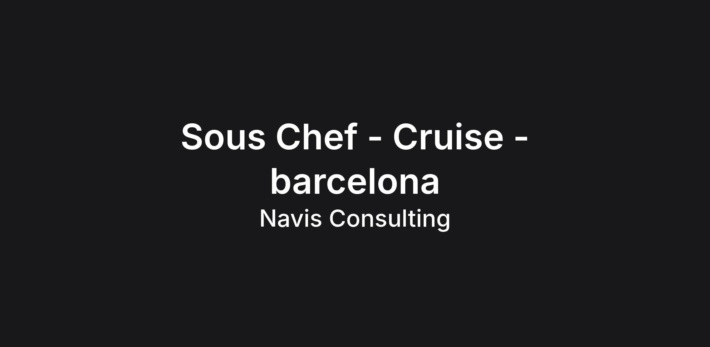 We are recruiting on behalf of a major cruise company who are looking for Sous Chefs to join with them. This is an opportunity to join a reputable organization who are offering excellent benefits and career opportunities.