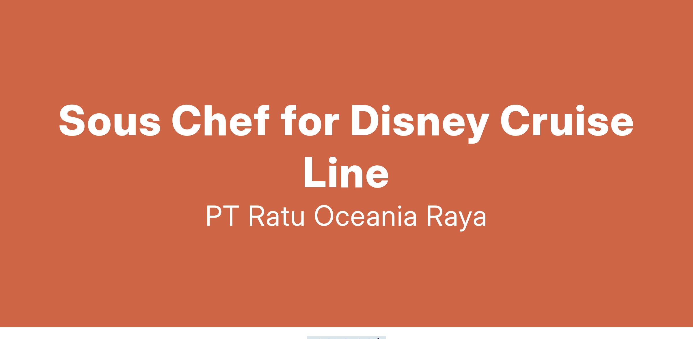 The time is NOW to apply to Disney Cruise Line! With more roles available than ever, you can kickstart your Disney career and help create magic for guests onboard. As the procurement ally for Indonesia, we’re here to help start your journey. Apply today!