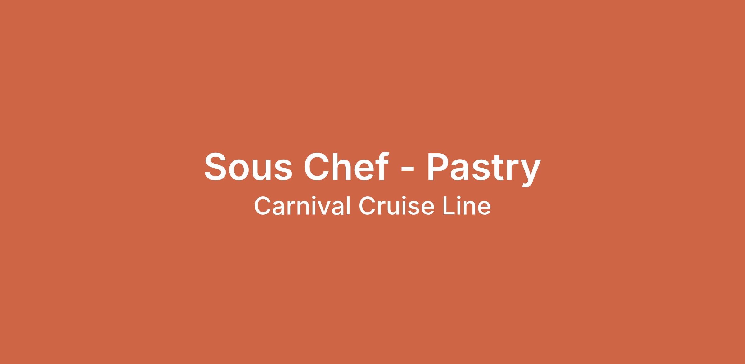 Set sail with Carnival Cruise Line and help us bring the FUN to life aboard one of our fantastic vessels as a Sous Chef - Pastry. You will form part of the Culinary Arts management team and lead the pastry and bakery operations of the ship.