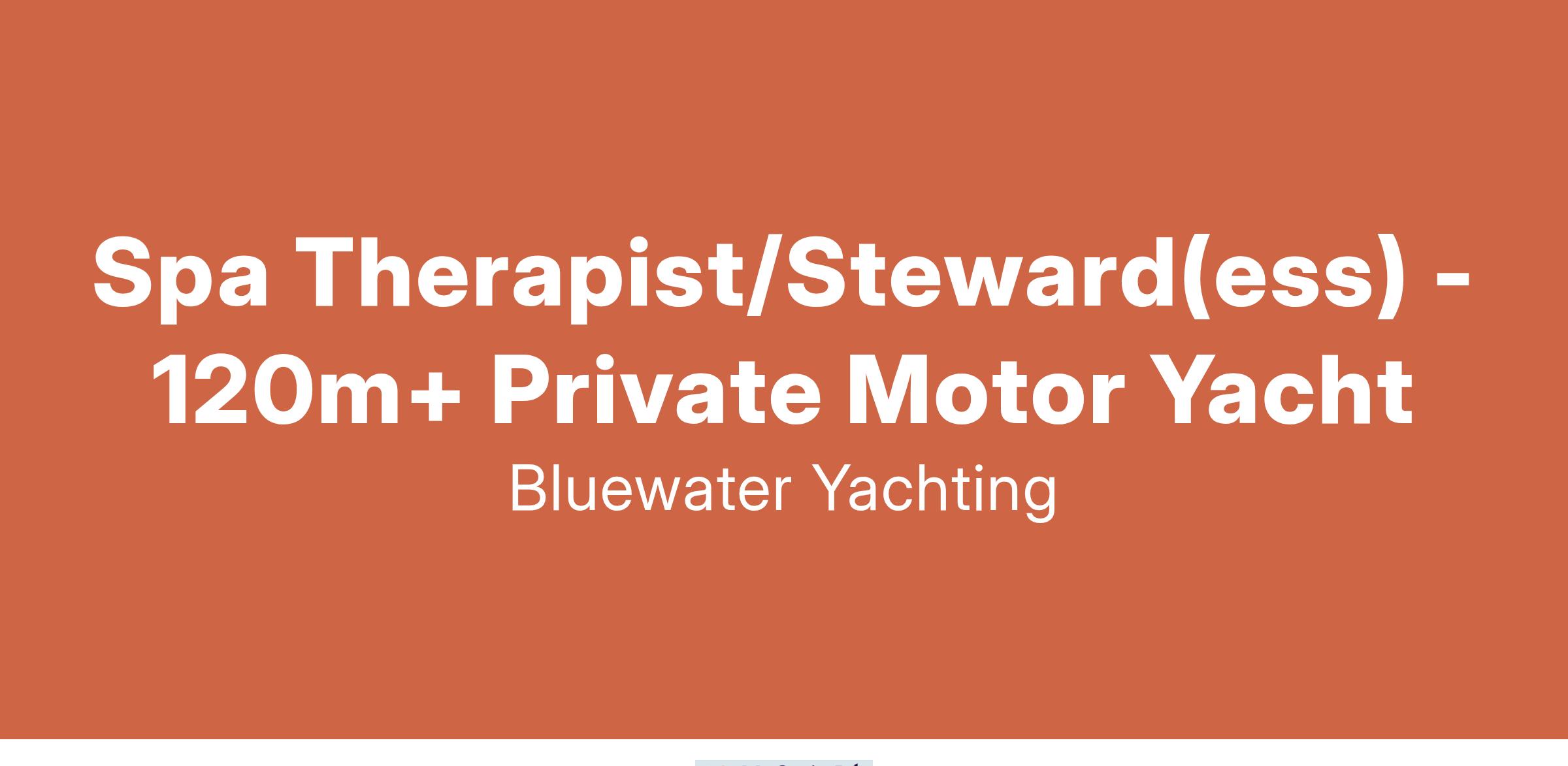 Spa Therapist/Steward(ess) - 120m+ Private Motor Yacht