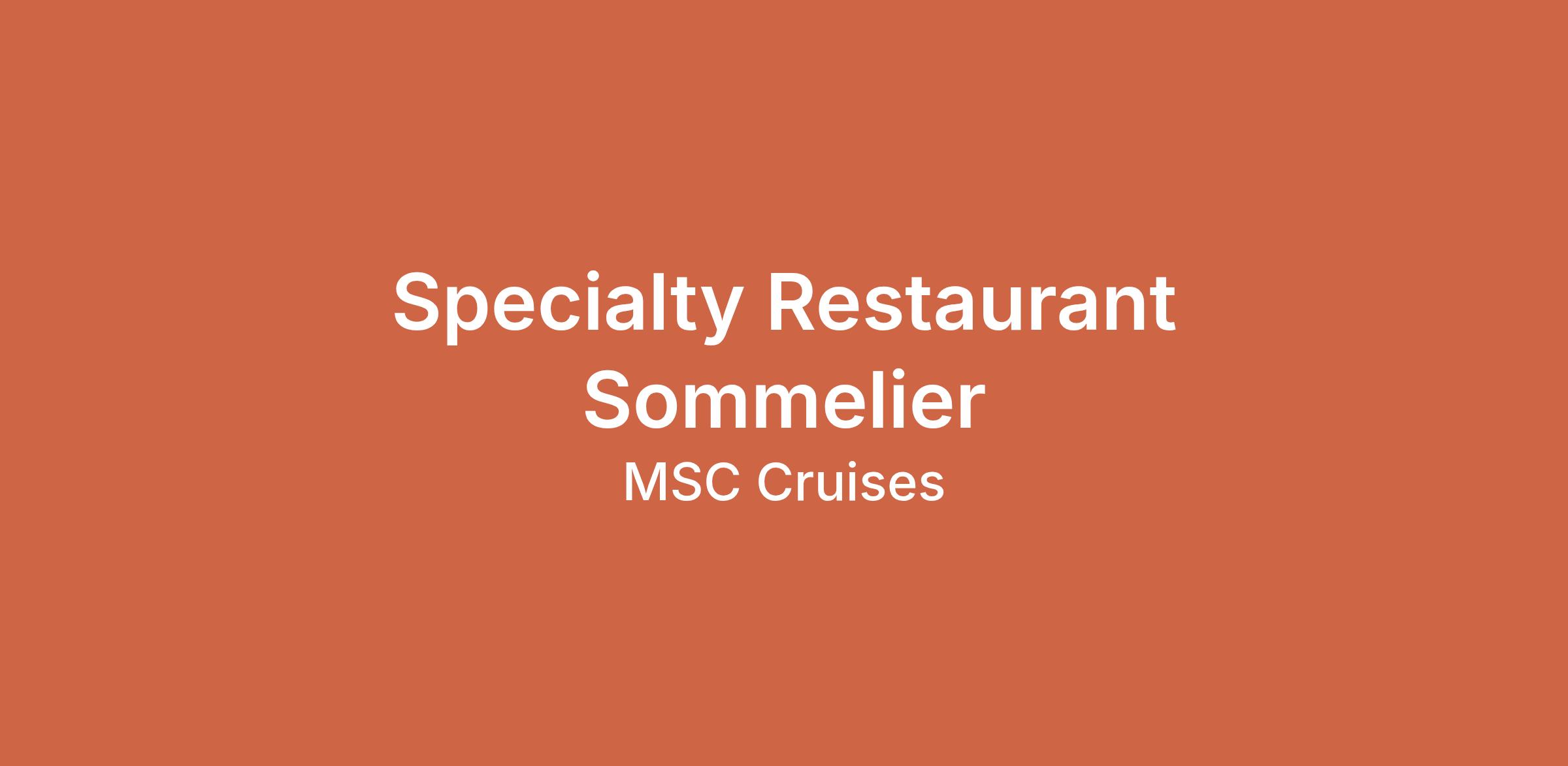 As a Specialty Restaurant Sommelier, you will be at the forefront of delivering exceptional dining experiences that combine fine wine with world-class cuisine. You will curate and recommend a selection of wines to enhance the flavors of our guests’ meals, ensuring every bottle tells a story. You will collaborate with chefs and service teams to create unforgettable moments, fostering a welcoming and luxurious atmosphere that elevates our guest's culinary journey. Your passion for wine, hospitality, and service will make you a key ambassador for the upscale dining experience we offer on board